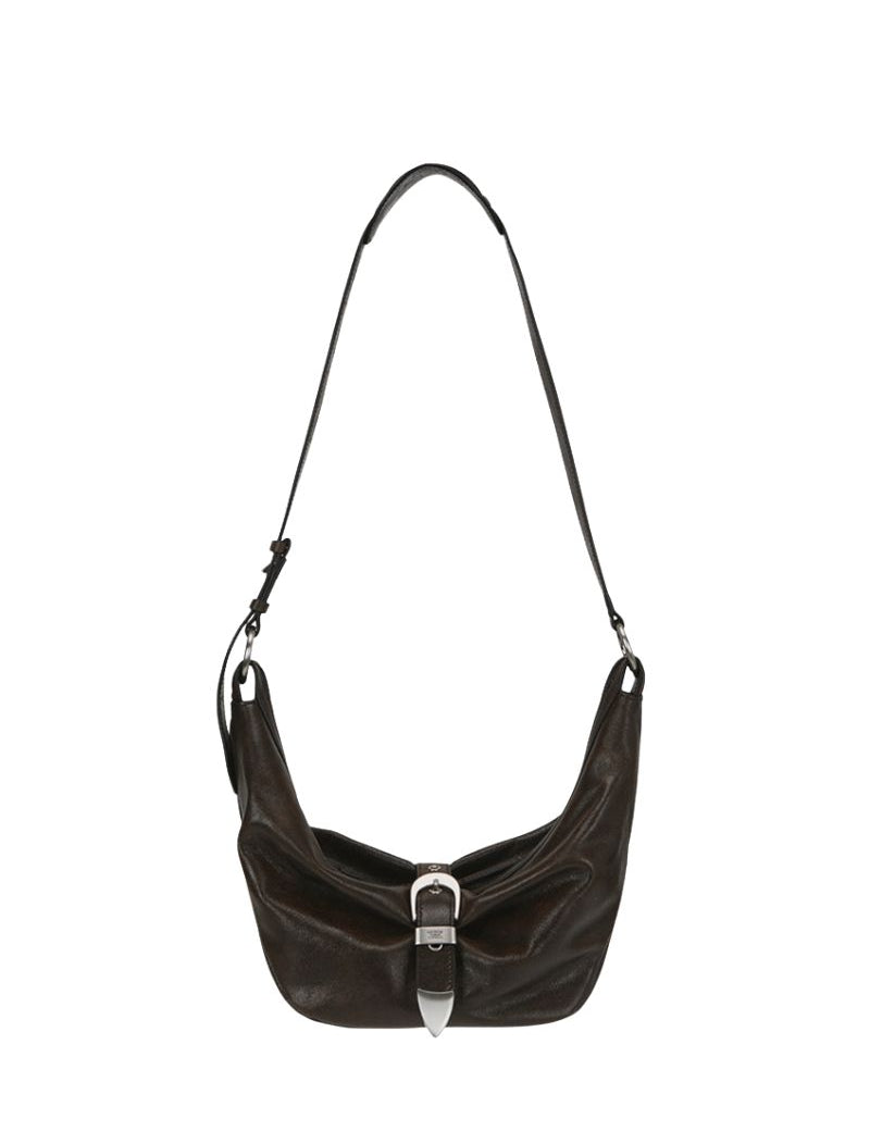 Belted hobo medium brown + black two tone cracked
