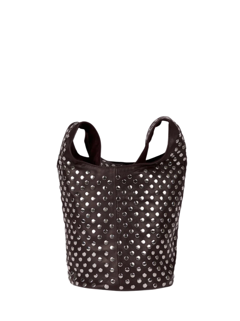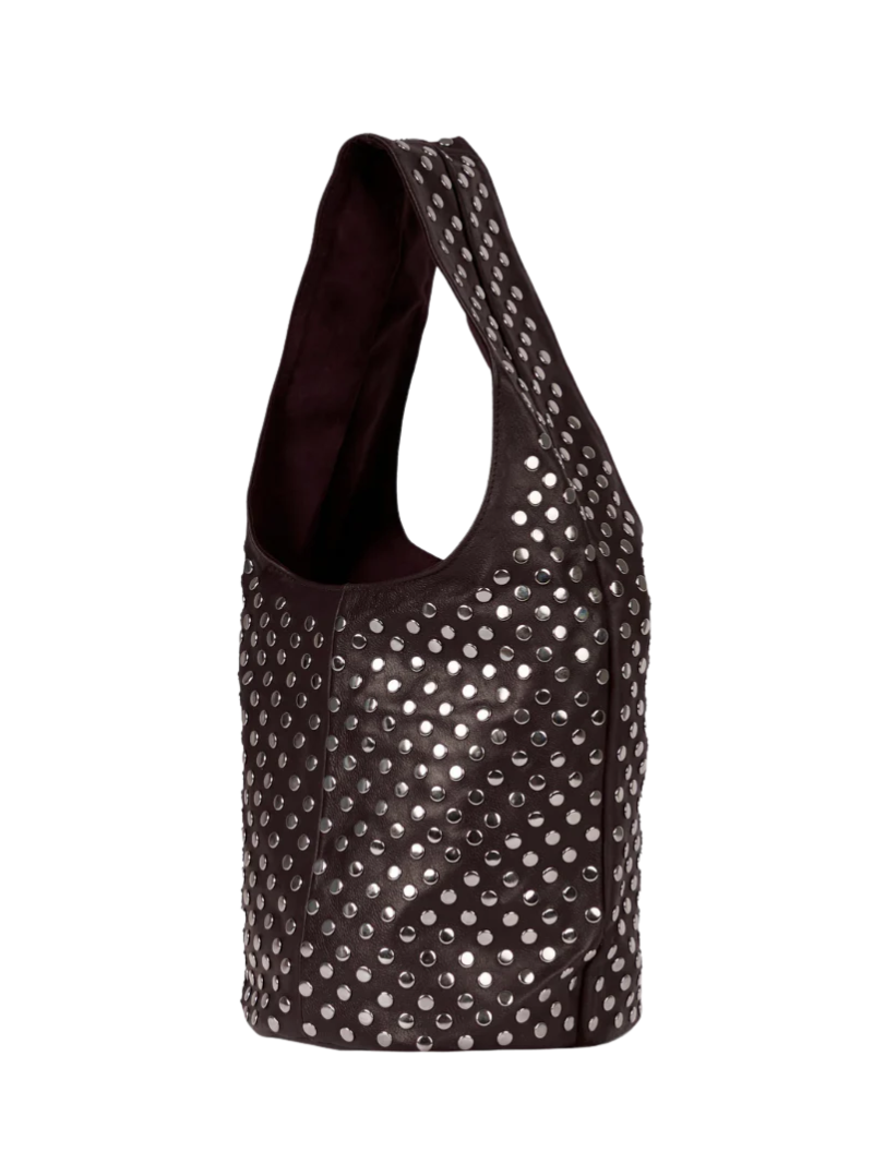 The Airlie Large Brown Shoulder Bag is the perfect accessory for those looking for style and functionality. Made from high-quality leather, it is highlighted with silver metallic studs, creating a modern and edgy look. Medium in size, it offers the ideal balance between style and functionality, allowing you to carry the essentials with elegance. This bag is ideal for elevating any outfit, adding a touch of personality and sophistication.