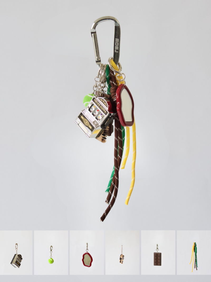 The AMSTERDAM charm is that finishing touch that makes all the difference. It combines the iconic MOSJ buckle with a mix of eye-catching charms: Casino , Mirror Kiss , Chocolate Bar , and Tennis Ball , along with three yellow, brown, and green cords that add texture and movement.