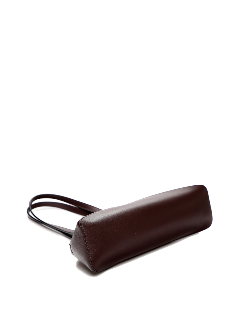 The deep chocolate brown hue gives it a modern and versatile touch, ideal for both day and night. Its long handles allow for comfortable shoulder carry, and its interior offers just enough space to carry your essentials without sacrificing style.