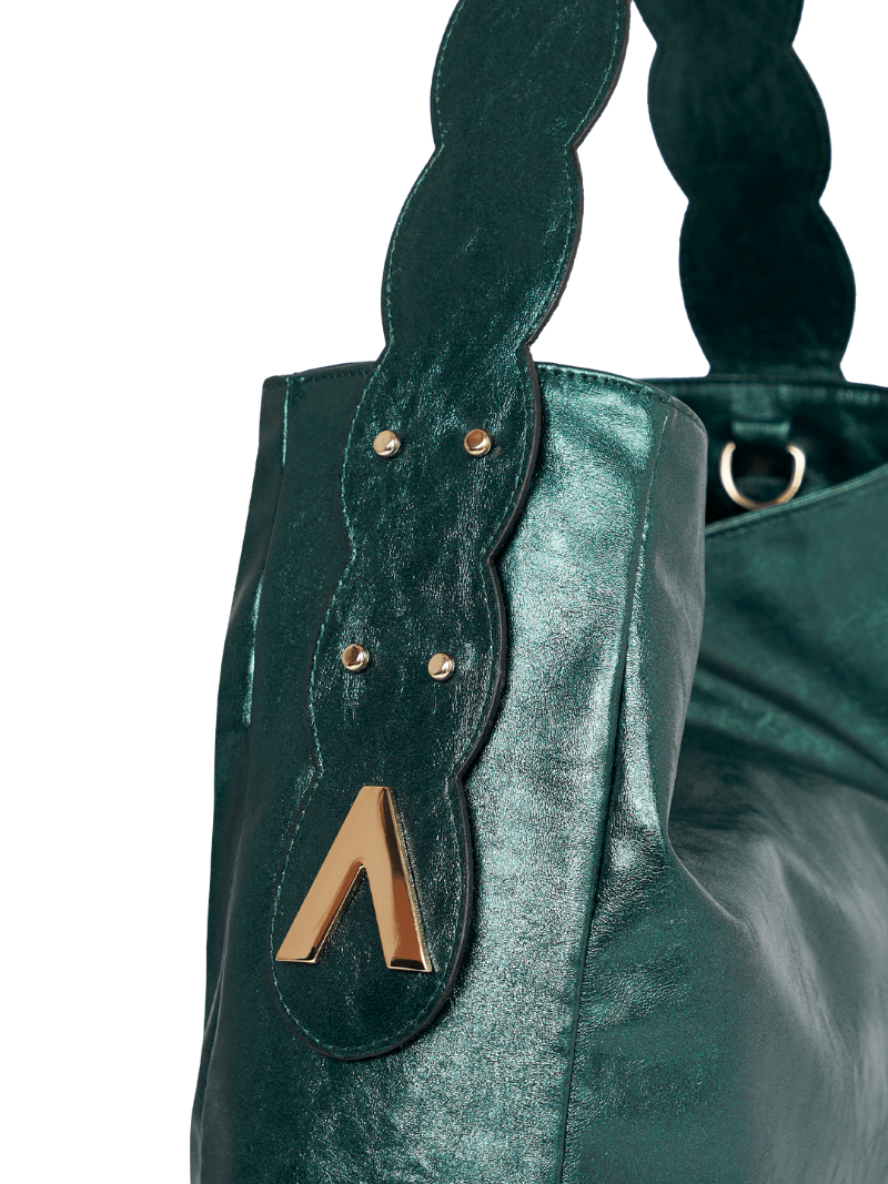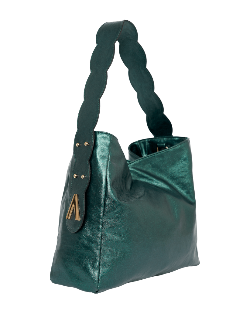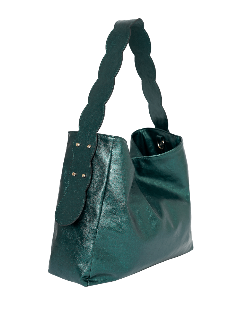 Medium shoulder bag, shopper style. Made of metallic vegan nappa