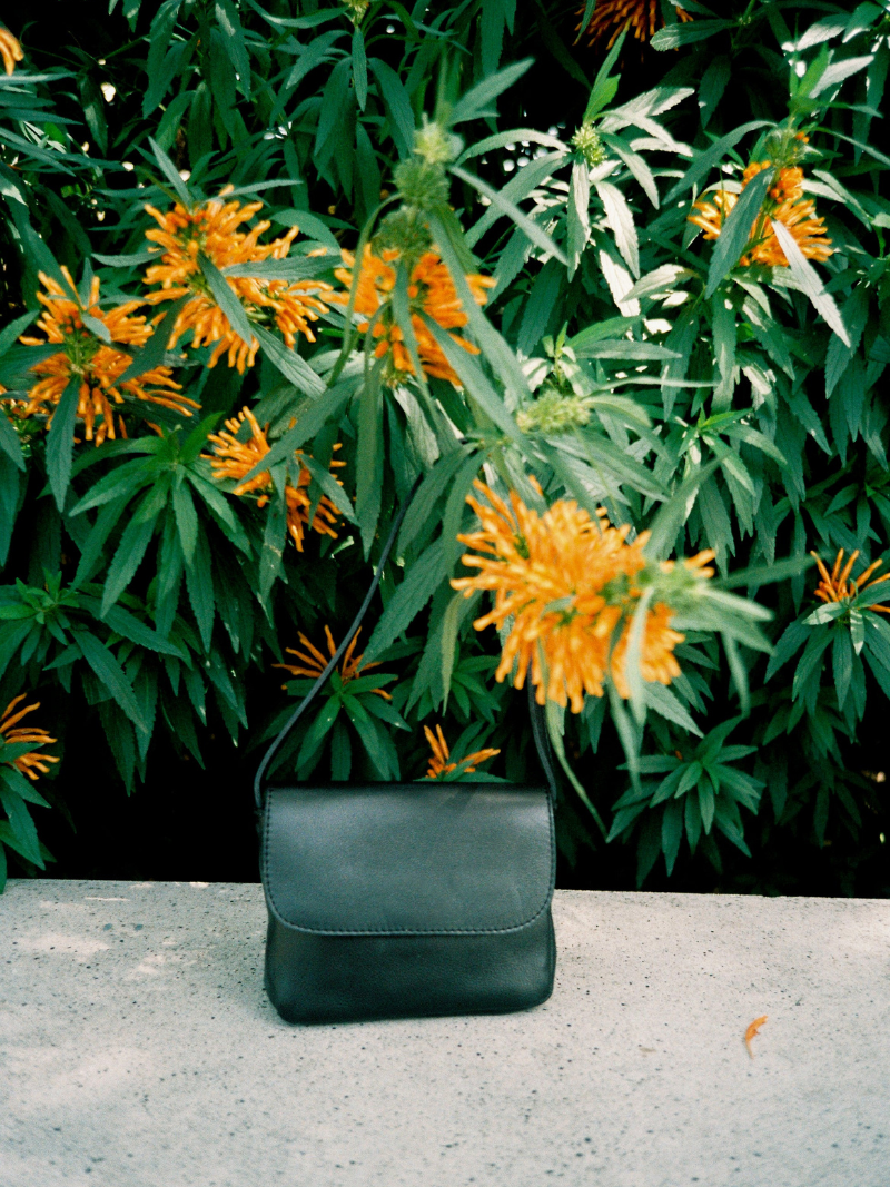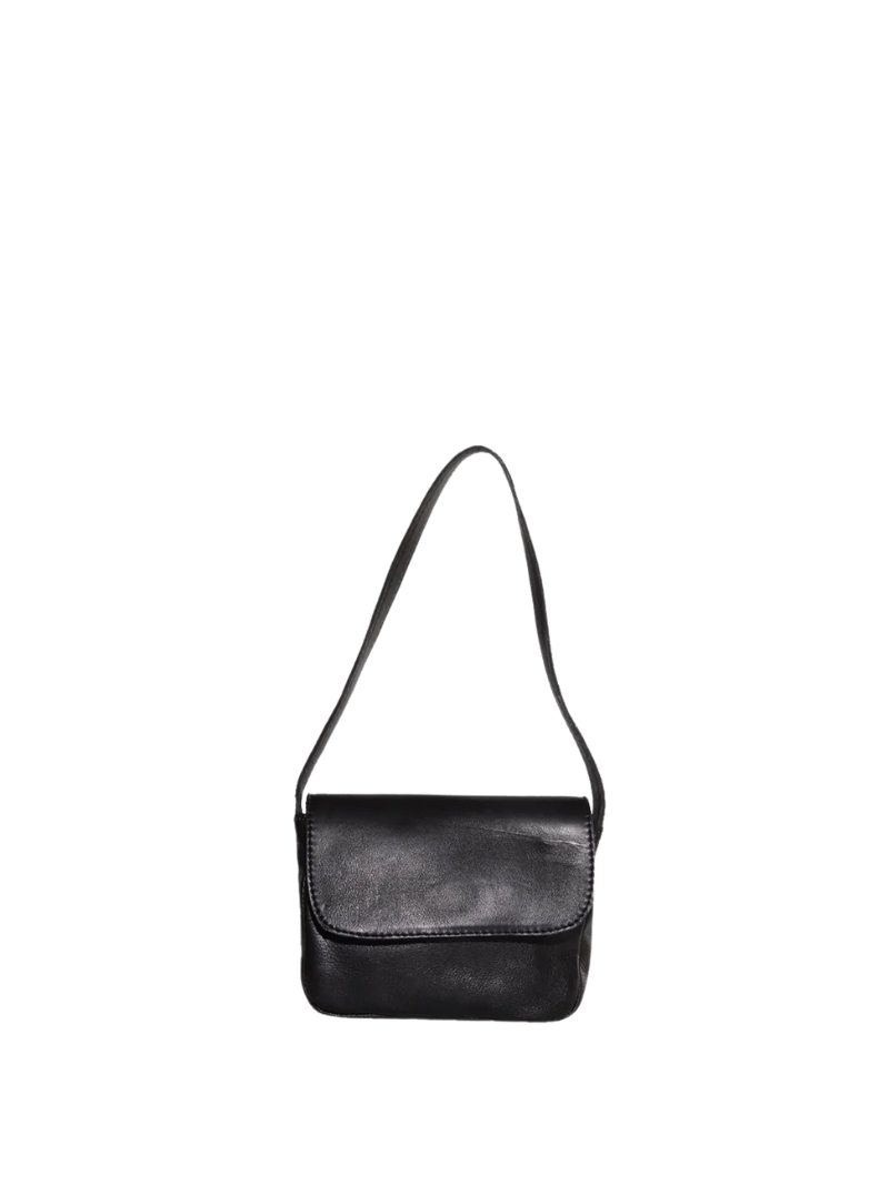 Small black leather shoulder bag. The Baby model is made of 100% leather, which gives it a wrinkled appearance, but with great softness and lightness.