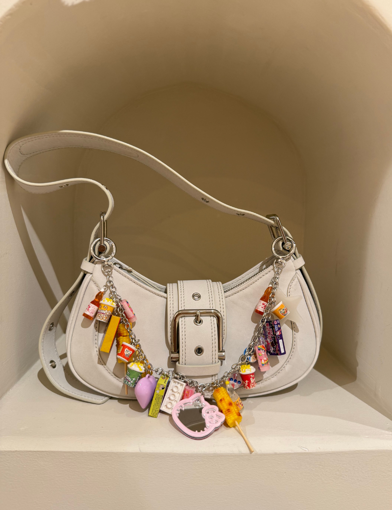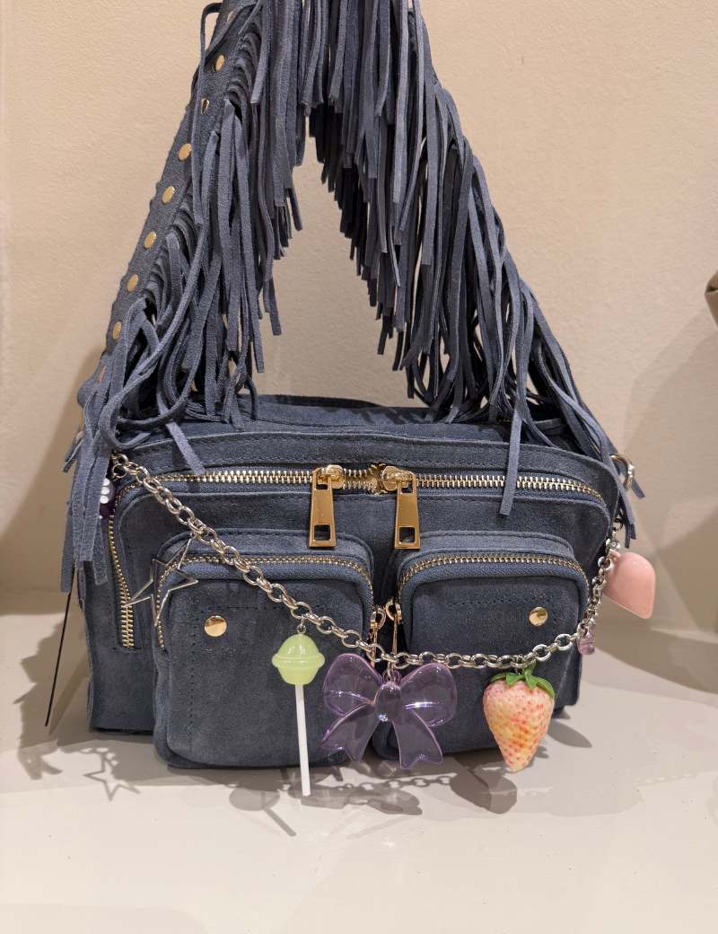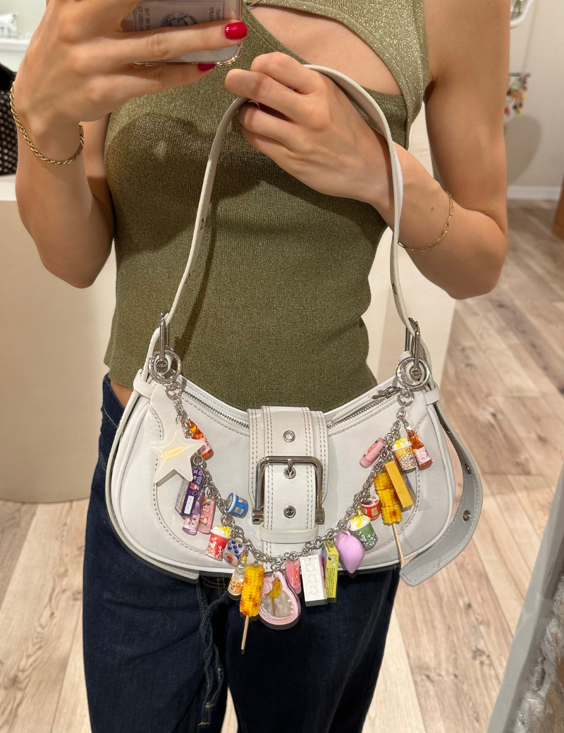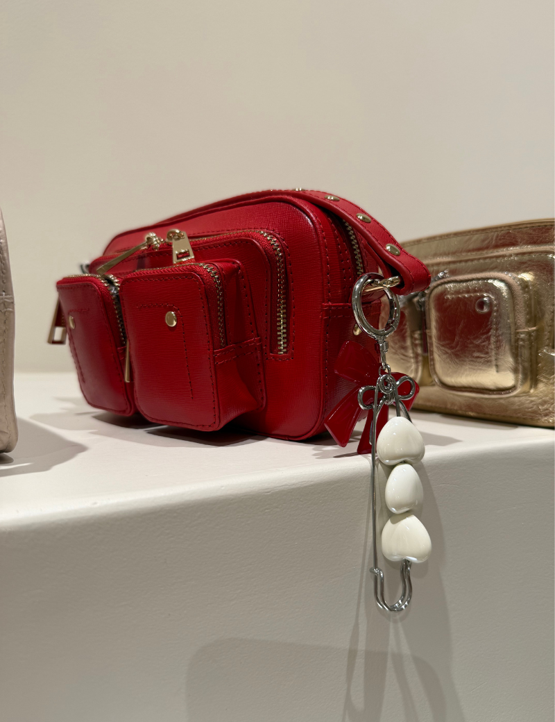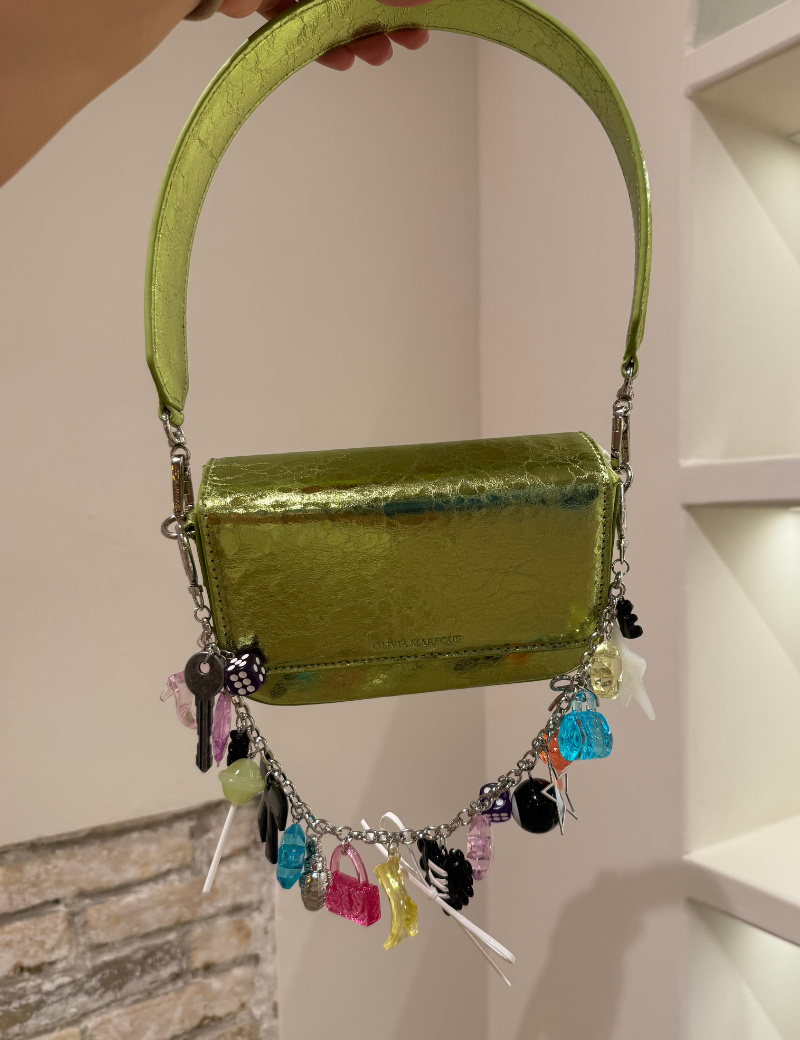 Finished with two purple carabiners personalized with the logo. Compatible with any Olivia Mareque brand bag.