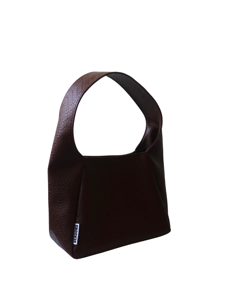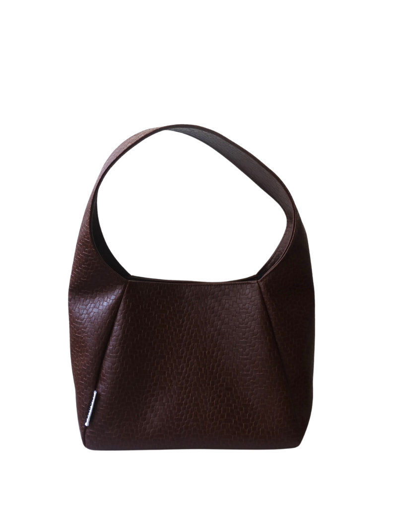 Medium brown shoulder bag with a small scale texture. A bold design, designed for those who prefer basics... but never boring. The subtle embossing adds an unexpected twist to a wardrobe classic.