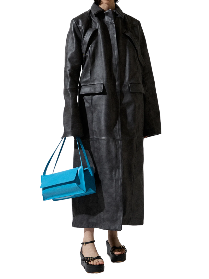 The blue Double Bag by Habey Club It is a contemporary design bag made of cowhide leather High quality. Its elongated structure and double compartment make it practical and stylish, ideal as a shoulder bag . The vibrant blue hue adds a sophisticated touch of color , perfect for standing out on any occasion. A modern and elegant bag . combining functionality and minimalist design .