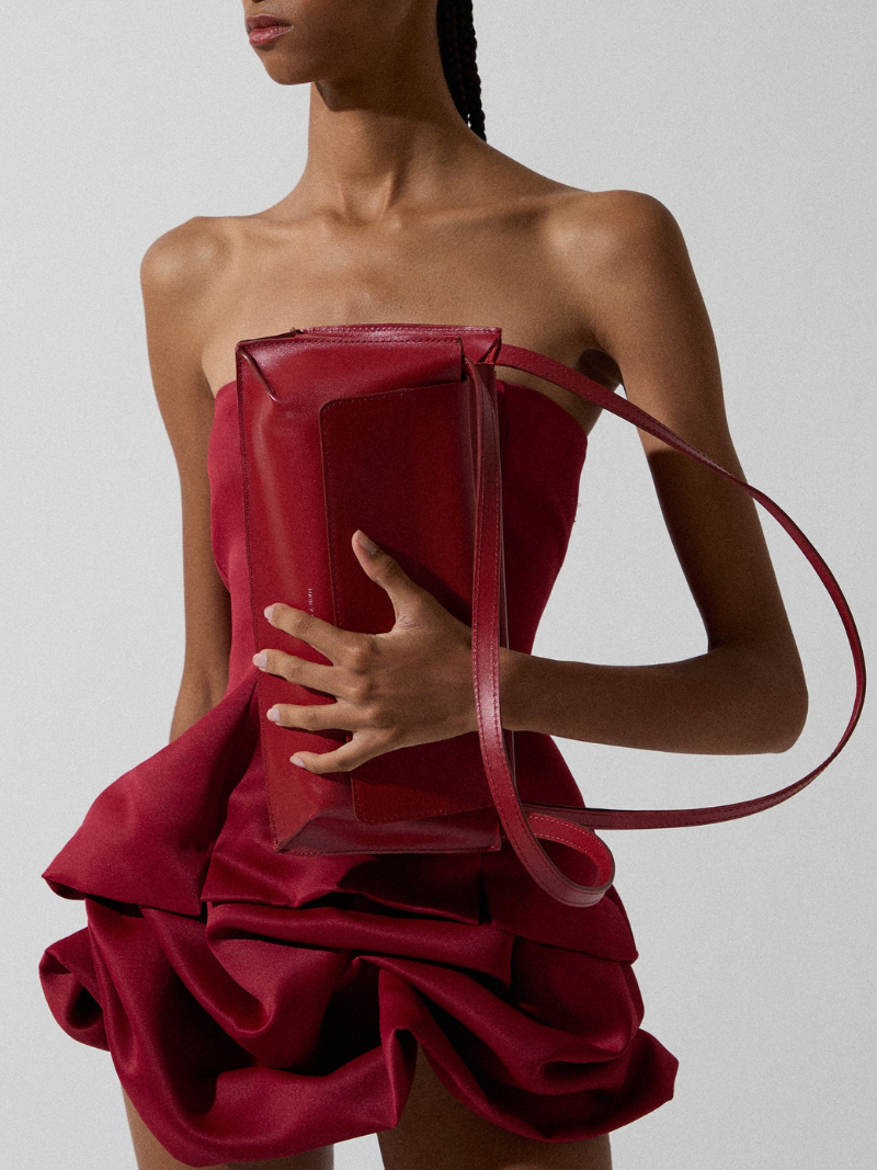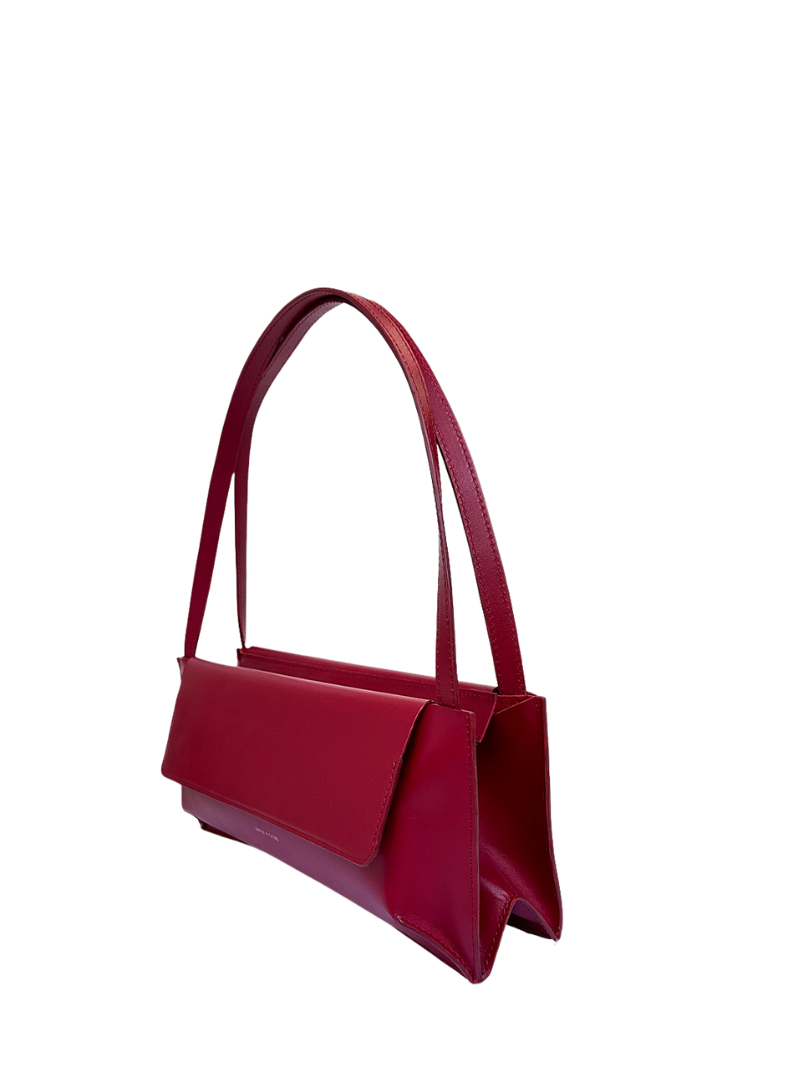 The Double Bag cherry from Habey Club It is a contemporary design bag made of cowhide leather . High quality. Its elongated structure and double compartment make it practical and stylish, ideal as a shoulder bag . The vibrant cherry hue adds a touch of sophisticated color, perfect for standing out on any occasion. A modern and elegant bag . combining functionality and minimalist design .