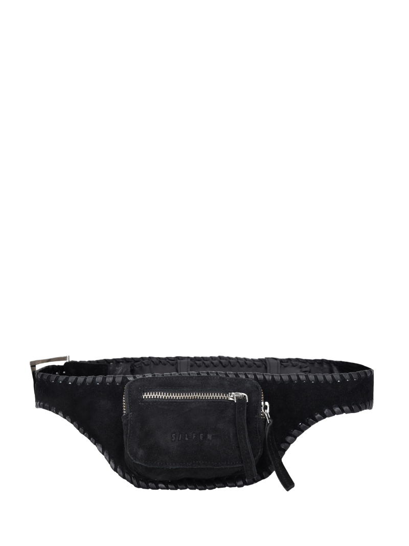 The Bruna Bear x SILFEN belt bag is designed to carry your essentials in style. Crafted from soft black suede and finished with braided details for a timeless and sophisticated touch.