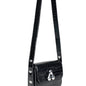 Small black crossbody bag with a crocodile-effect finish and the signature melted metal closure on the front. Its compact design features a main compartment under a flap with a magnetic closure and an adjustable strap, allowing you to wear it on the shoulder or crossbody.