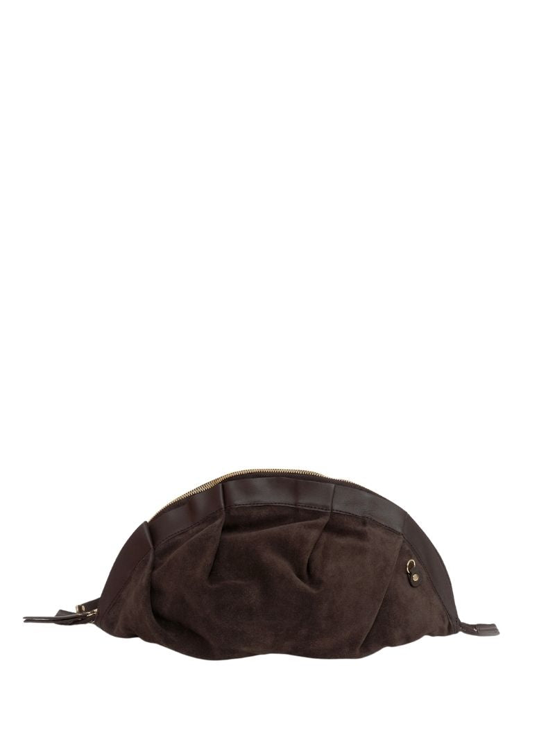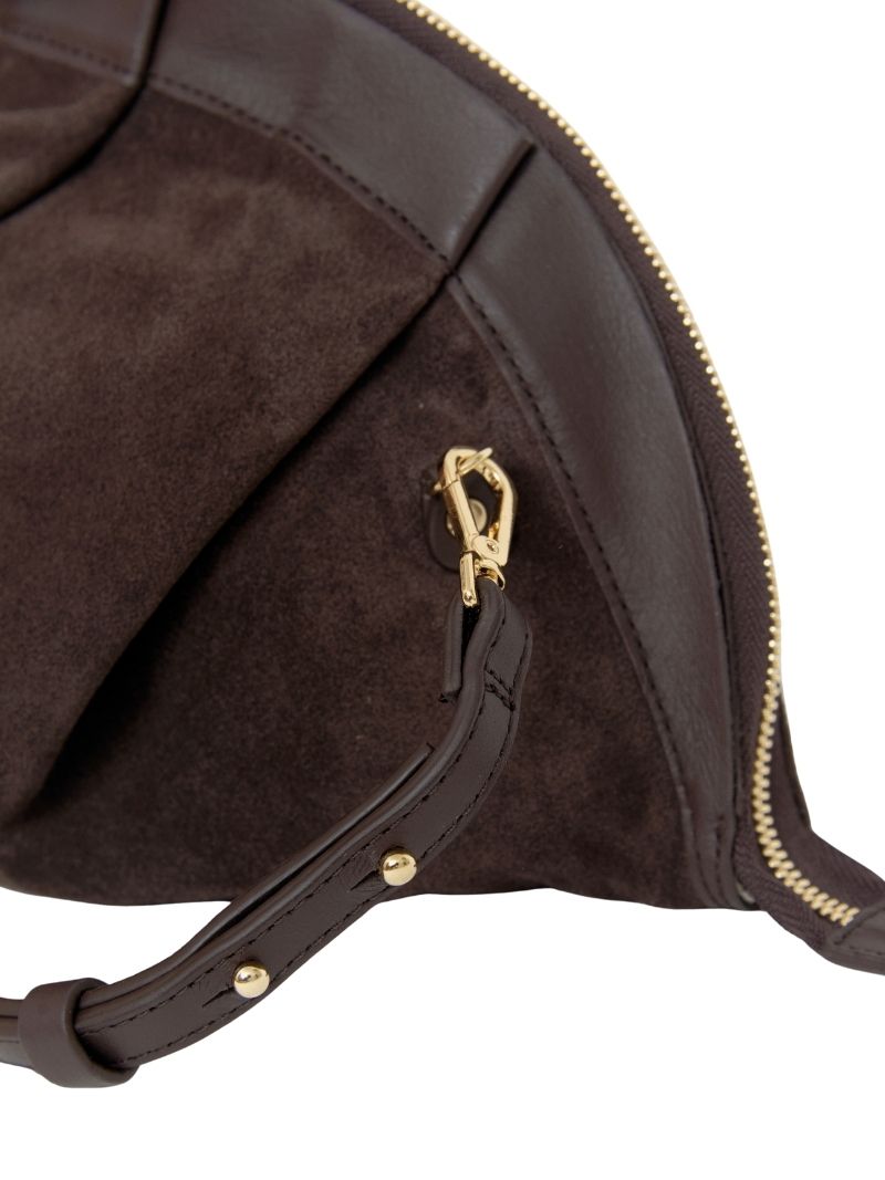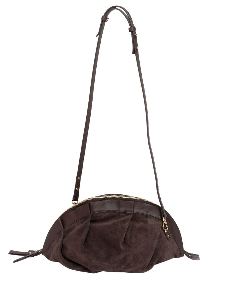 This Gyoza Bag in suede and leather combines 100% cowhide with Italian suede, creating a piece with depth, texture, and character. Its soft, sculptural silhouette, inspired by the shape of gyozas, adds a sophisticated and timeless touch.
