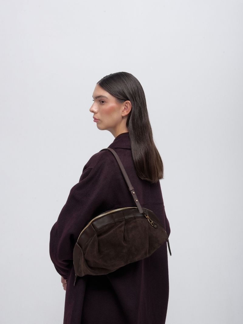 Chocolate brown shoulder bag from the Yunyinrose Studio collection, a line that highlights craftsmanship and the quality of materials.