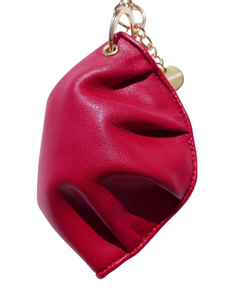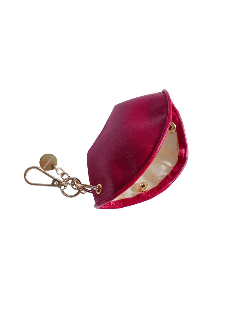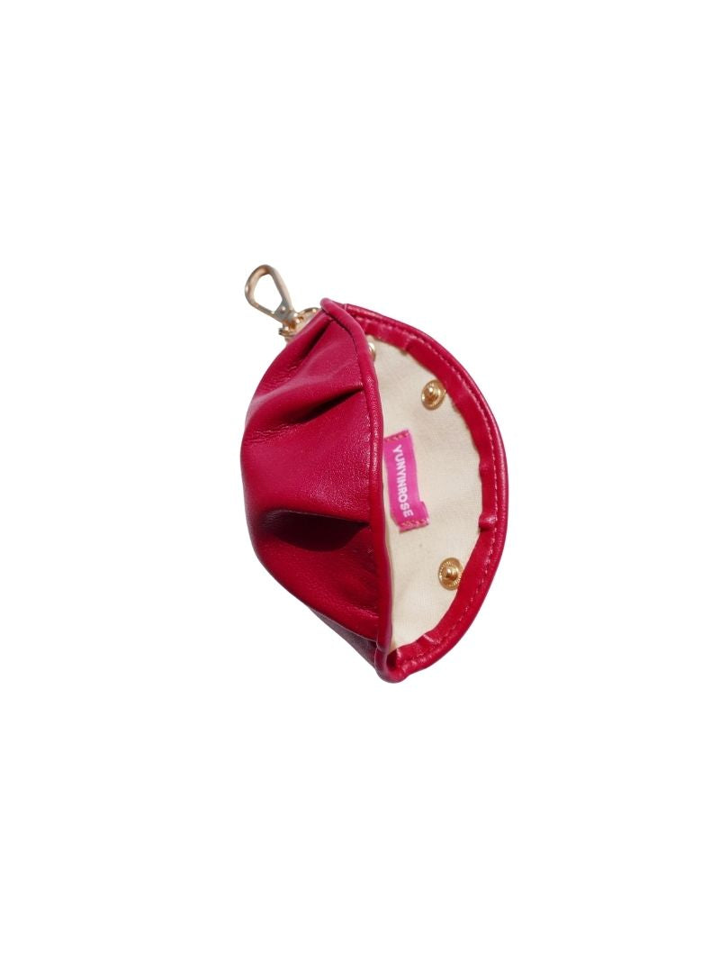 This gyoza isn't for eating... but it's for wearing. A red, gyoza-shaped charm made of ultra-soft cowhide leather, designed to stylishly hold your AirPods, coins, or other small essentials.