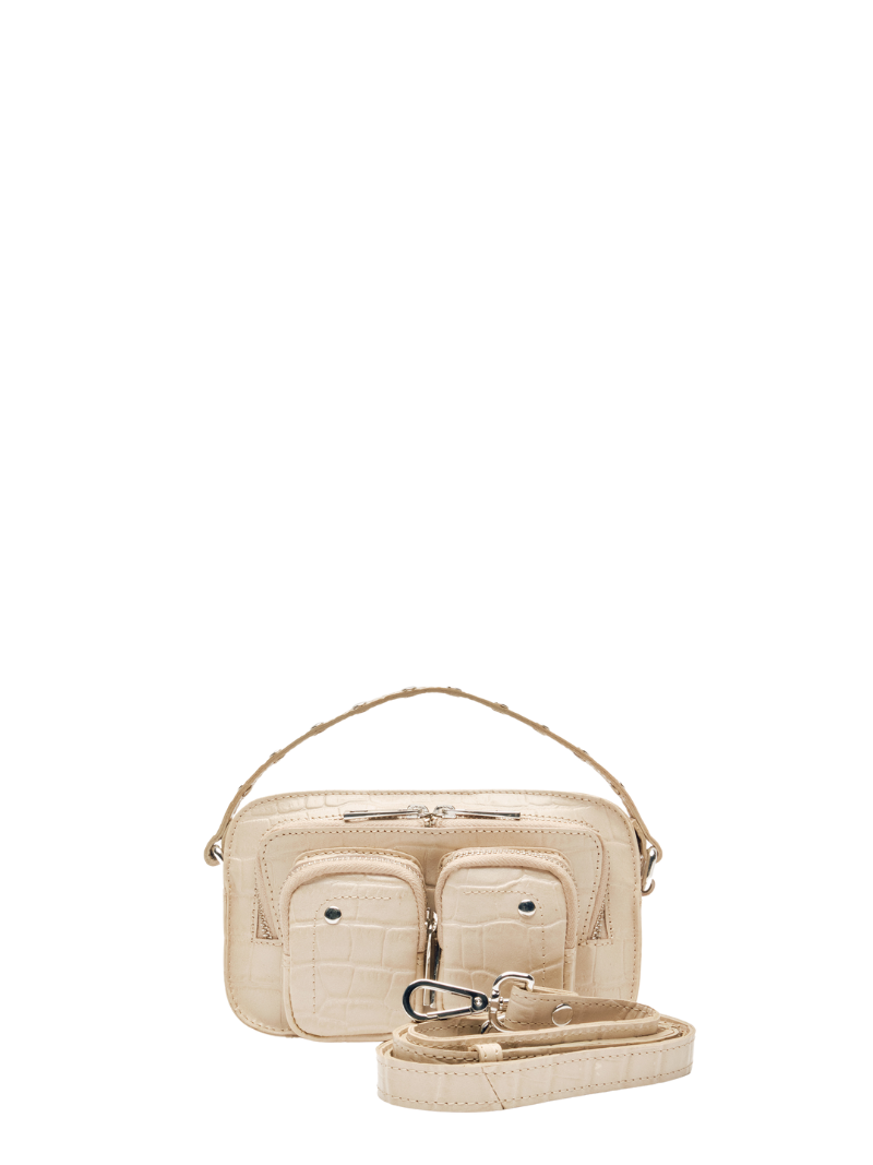 The Helena model by Núnoo fits perfectly with a cell phone, wallet, keys, lipstick, or similar. It has several compartments and a handle and a removable, adjustable leather strap so you can cross the bag over your body.