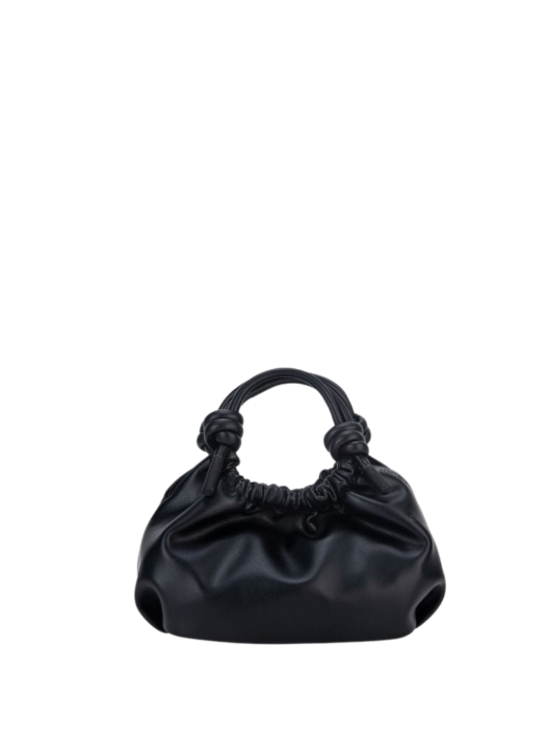 Small handbag made from partially recycled material in matte black.