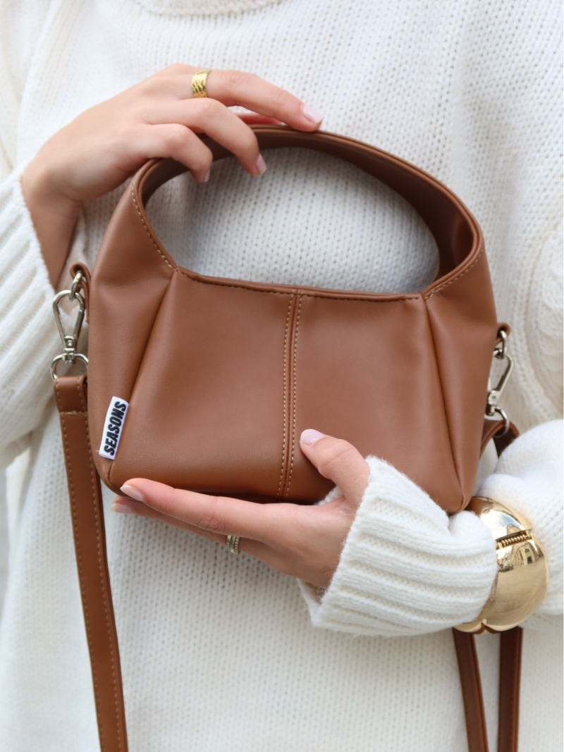 This mini brown handbag is the perfect everyday accessory. Its compact and functional design combines elegance and practicality, thanks to its secure button closure and adjustable strap that allows you to comfortably carry it across your body or on your shoulder.
