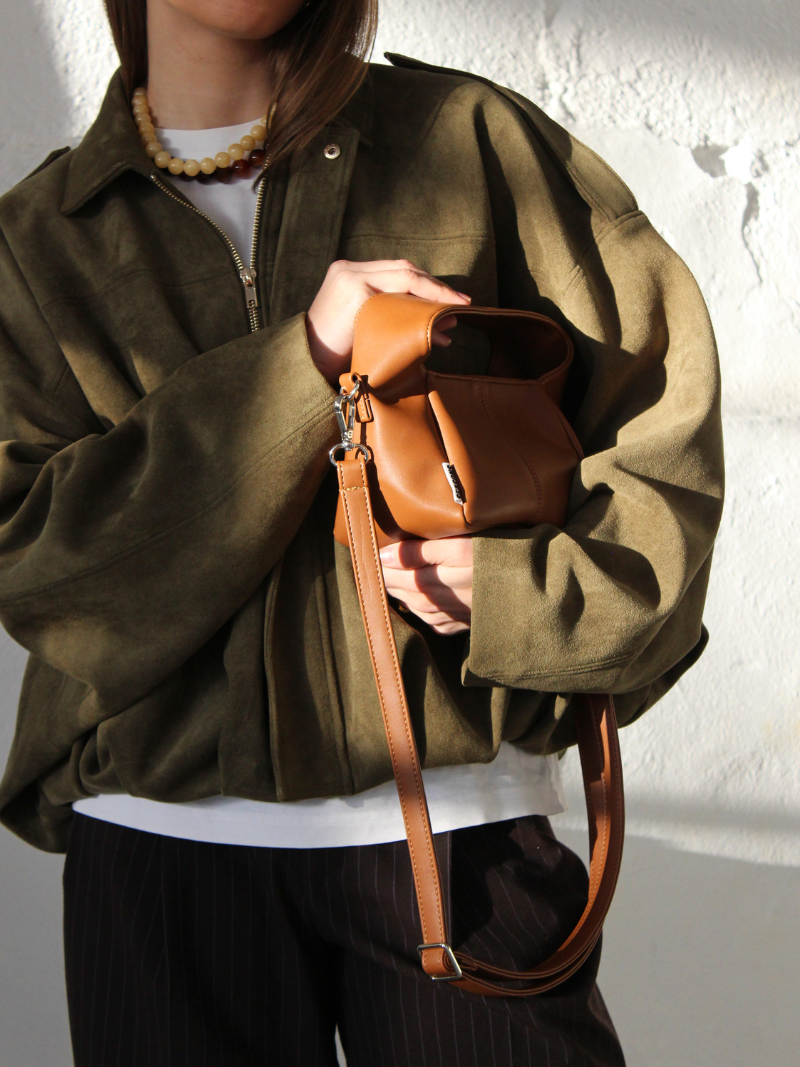 The camel color easily matches any look, providing a sophisticated, discreet, and timeless touch.