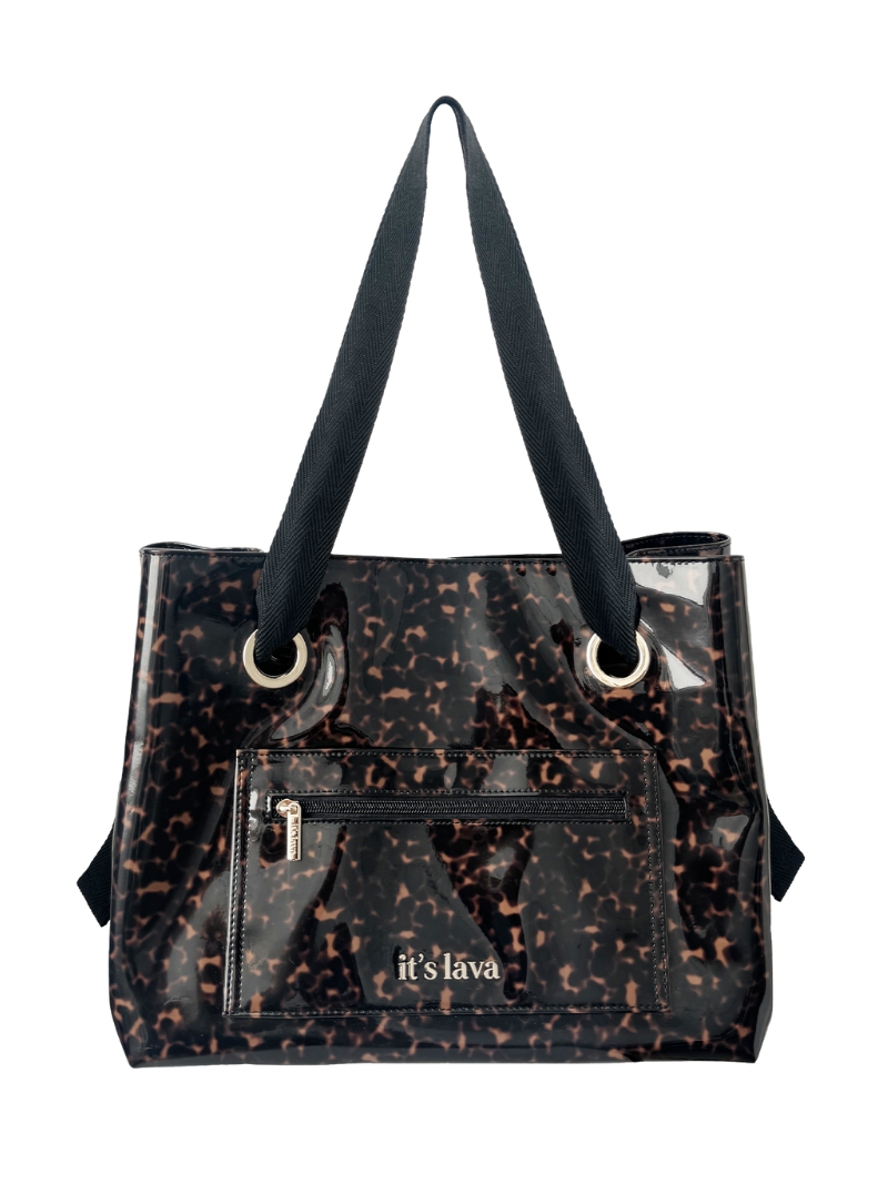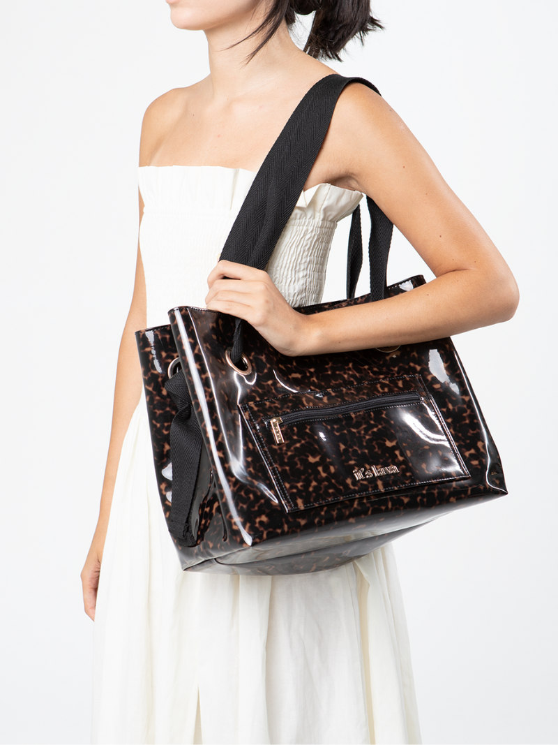 All-terrain shopper bag made of waterproof synthetic material. It features two adjustable handles, finished with a knot on each side, which can be removed and replaced with others.