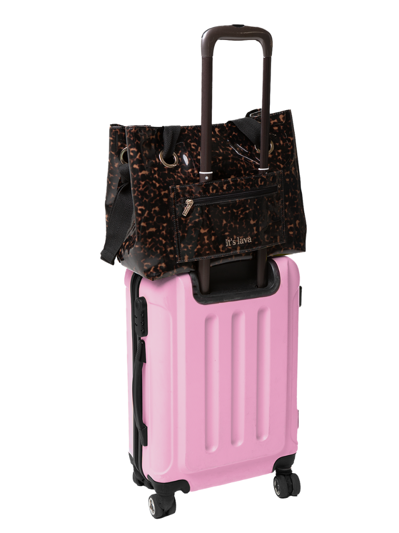 Inside, you'll find a zippered pocket perfect for storing your essentials, while the exterior features a slot for attaching to a suitcase handle and an additional zippered pocket.