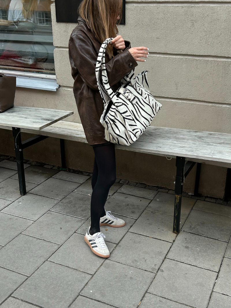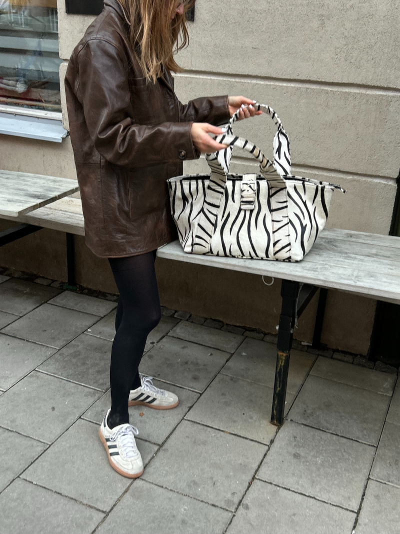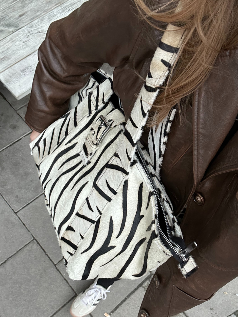 The Brown Stripes Deluxe Shopper is the perfect blend of functionality and style. Its zebra-print leather design gives it a modern feel, perfect for complementing any look. With long handles and a spacious compartment, it is perfect for carrying your daily essentials in comfort. This large bag becomes the perfect ally for any occasion, from work days to weekend getaways.