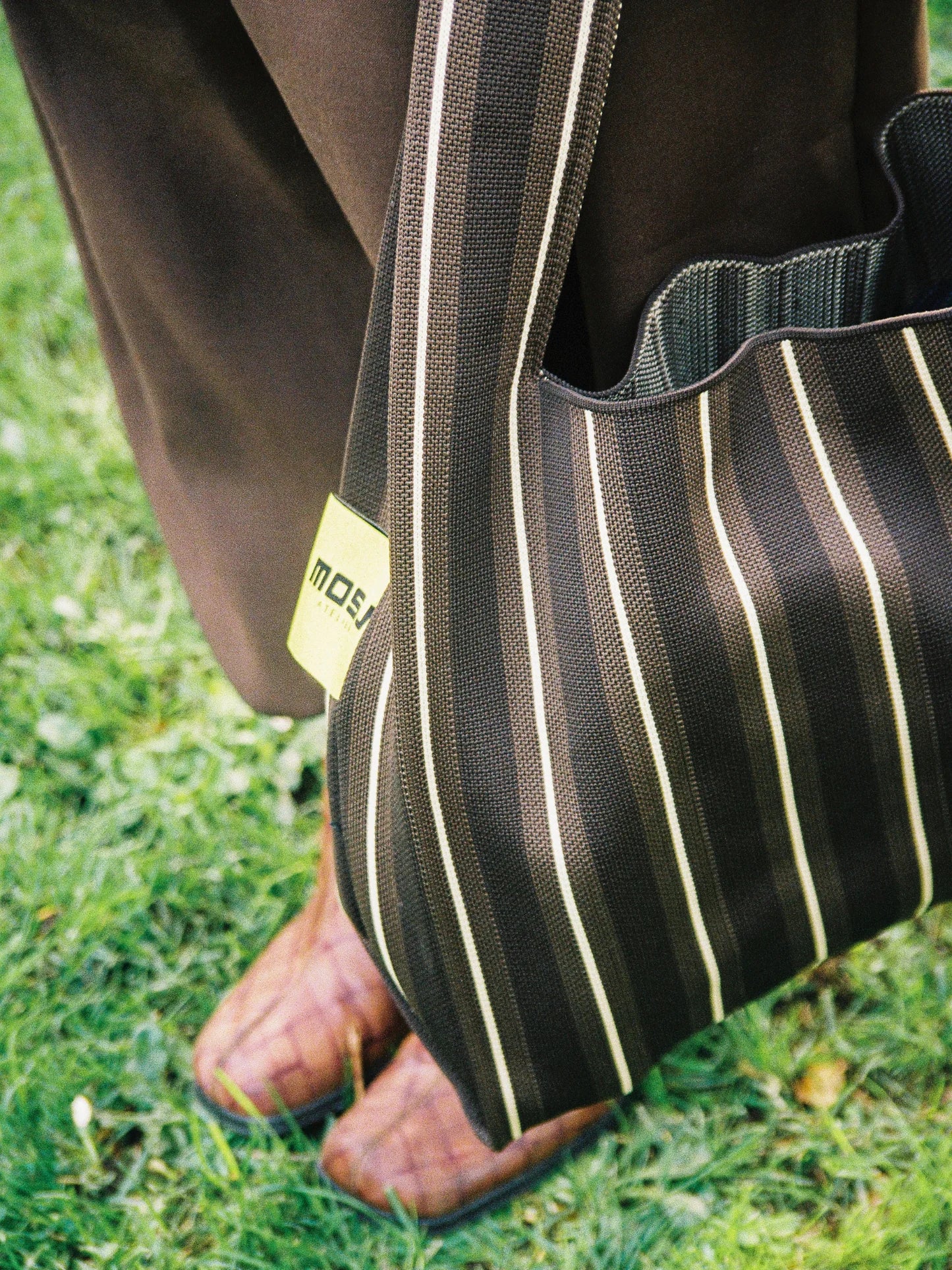The Mocha Boxer Crossbody Bag blends rich mocha brown tones with a soft pastel yellow stripe, creating a modern and balanced contrast that effortlessly elevates any look.