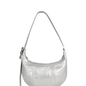 Medium-sized oval shoulder or crossbody bag. Crafted from vegan napa leather in a gold finish.