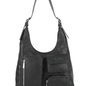 Large black bag, ideal for everyday use. It has three exterior pockets with metal zippers, perfect for keeping your belongings organized, and offers a modern touch that complements any look.