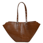 Orange-brown leather shoulder bag, perfect for everyday use thanks to its large capacity and unique design.
