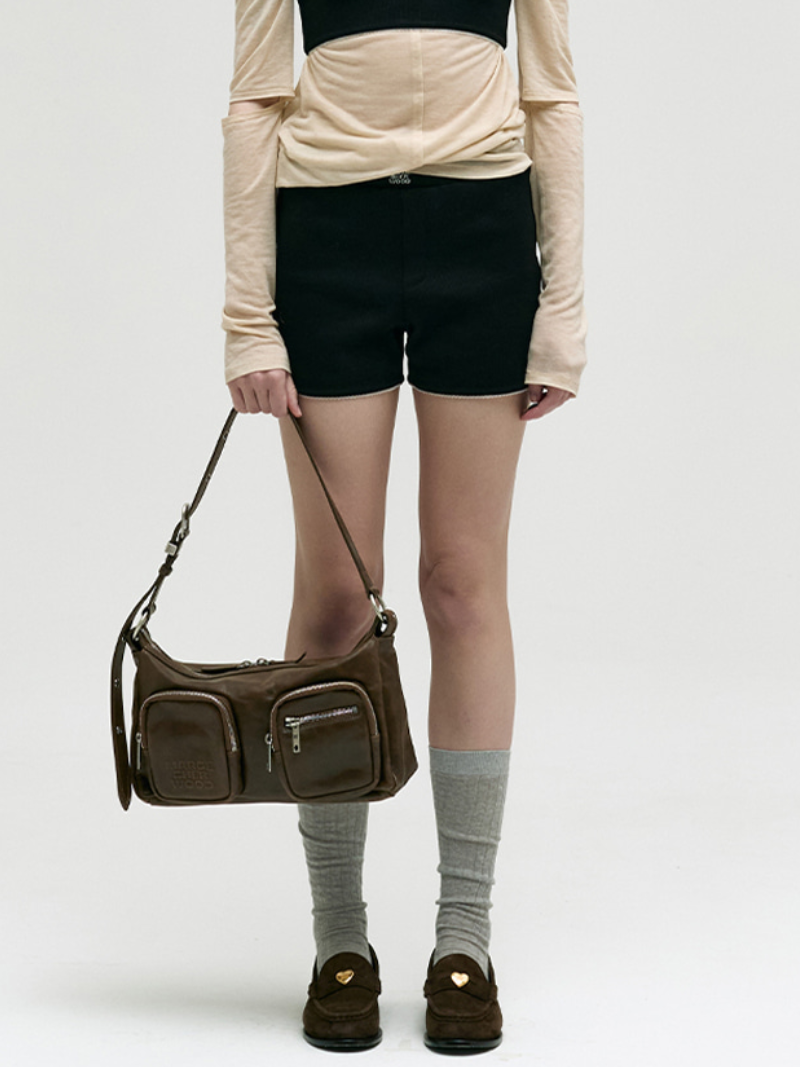 The medium Outpocket model features two large exterior pockets with the brand name embroidered on the left pocket.