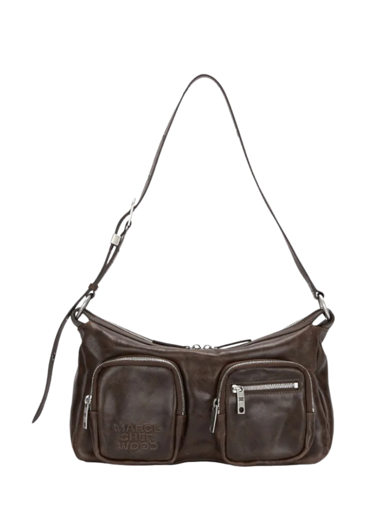Margesherwood medium hobo bag in distressed vintage brown leather with silver accents. It can be worn over the shoulder or across the body thanks to its adjustable strap.