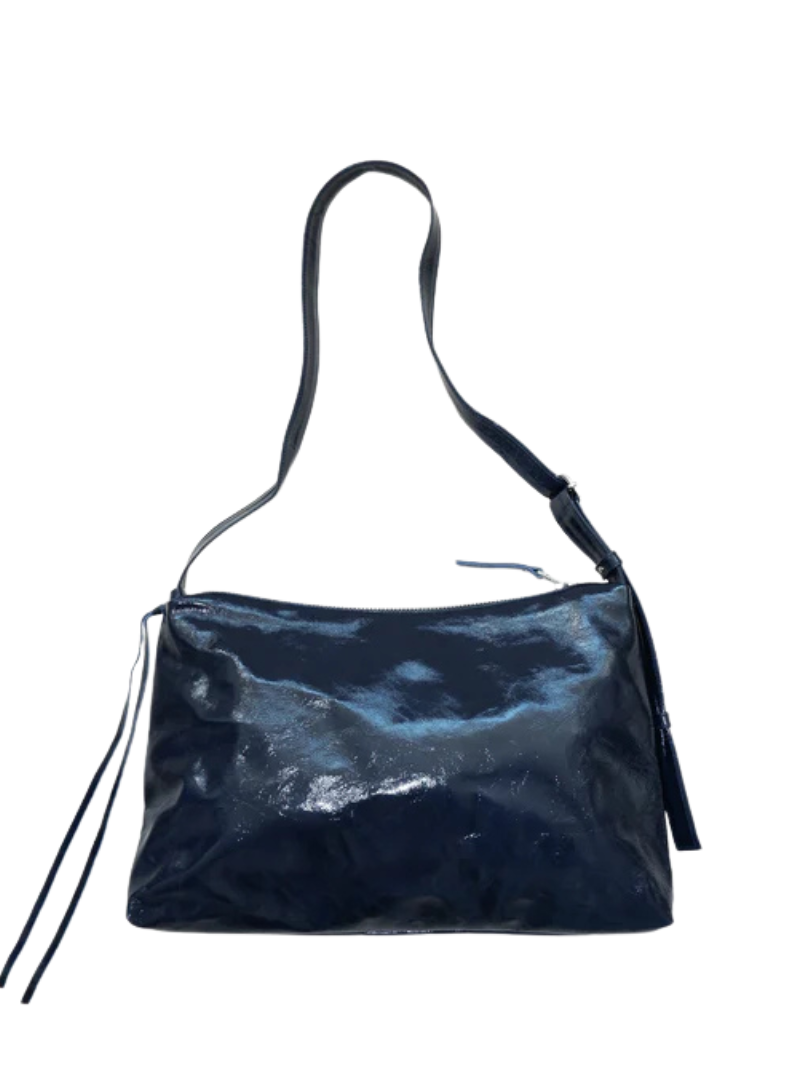 Medium black leather bag with a silhouette that matches Elegance and timelessness. Its thin, adjustable strap allows you to comfortably wear it across your body, over your shoulder, or in your hand as a pouch.