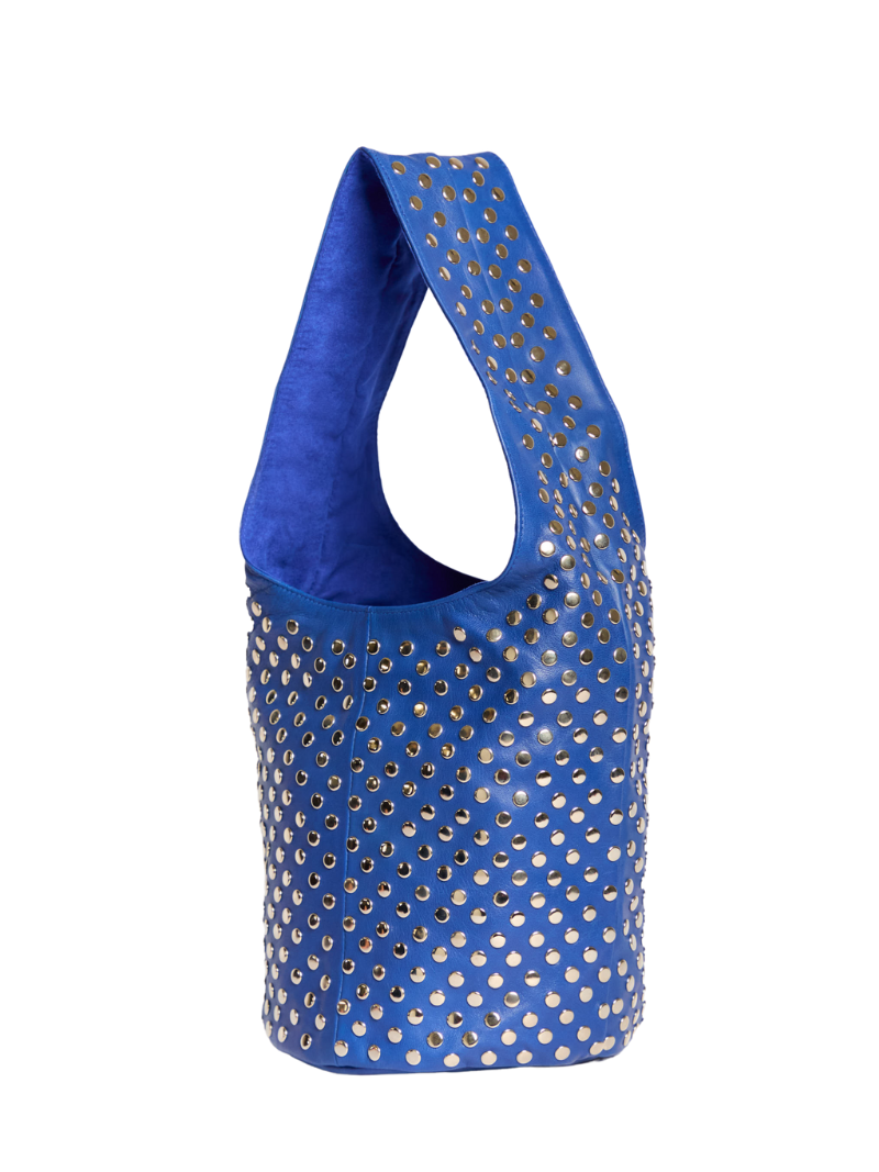 El bolso Airlie azul mediano es el accesorio ideal para quienes buscan estilo y funcionalidad. Fabricado en piel de alta calidad, este bolso destaca por su color blanco vibrante, complementado con tachuelas metálicas plateadas que le otorgan un toque edgy y sofisticado. Su diseño compacto lo convierte en el acompañante perfecto para llevar lo esencial en cualquier salida, añadiendo un toque audaz y moderno a cualquier look. Eleva tu outfit con este bolso de diseño atrevido y detalles únicos.