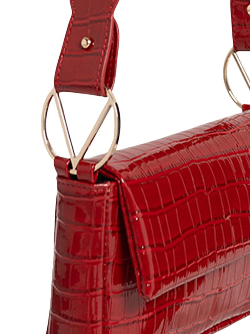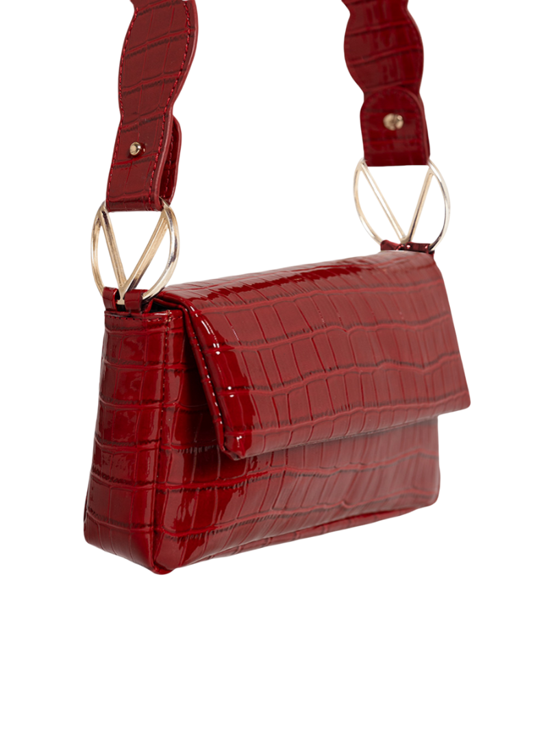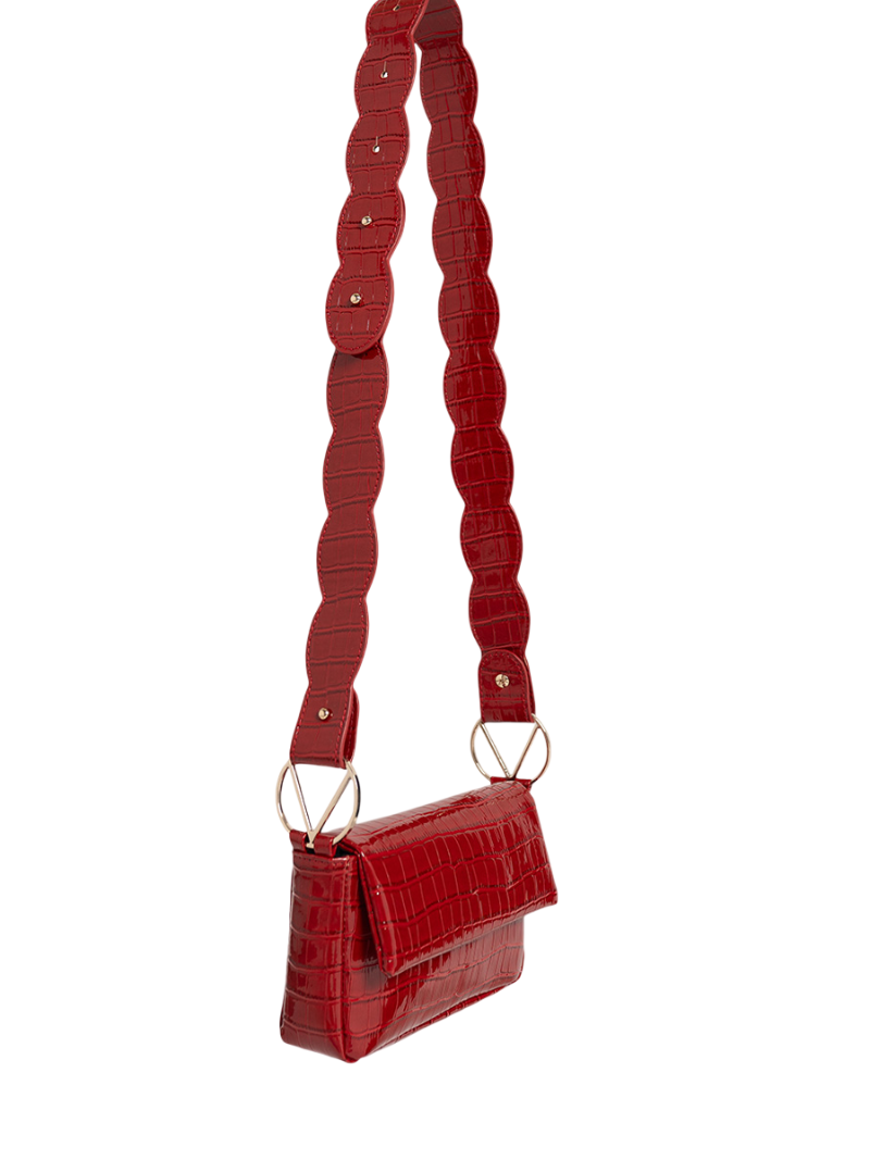 Bolso mini en color rojo, el bolso Ale es el bolso mini perfecto para todas aquellas personas que necesitan llevar consigo los ítems imprescindibles sin descuidar el estilo. Está equipado con una correa ajustable para adaptarse a la comodidad de cada usuaria, una solapa con cierre magnético, un bolsillo interno y otro externo apto para guardar un labial. El estilo, la practicidad y la comodidad en un solo bolso.