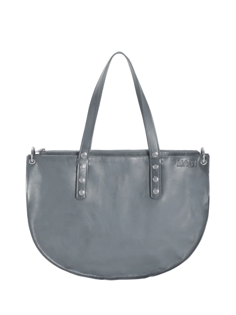 Bolso shopper en un sofisticado color gris, elaborado con piel de vacuno certificada LWG, que asegura calidad y sostenibilidad. Su diseño elegante incluye un discreto gravado del logo "MAS1" en la parte frontal. Con asas ajustables para llevar al hombro, este bolso combina estilo y funcionalidad, siendo lo suficientemente espacioso para llevar cómodamente un portátil. Ideal para acompañarte en tu día a día.