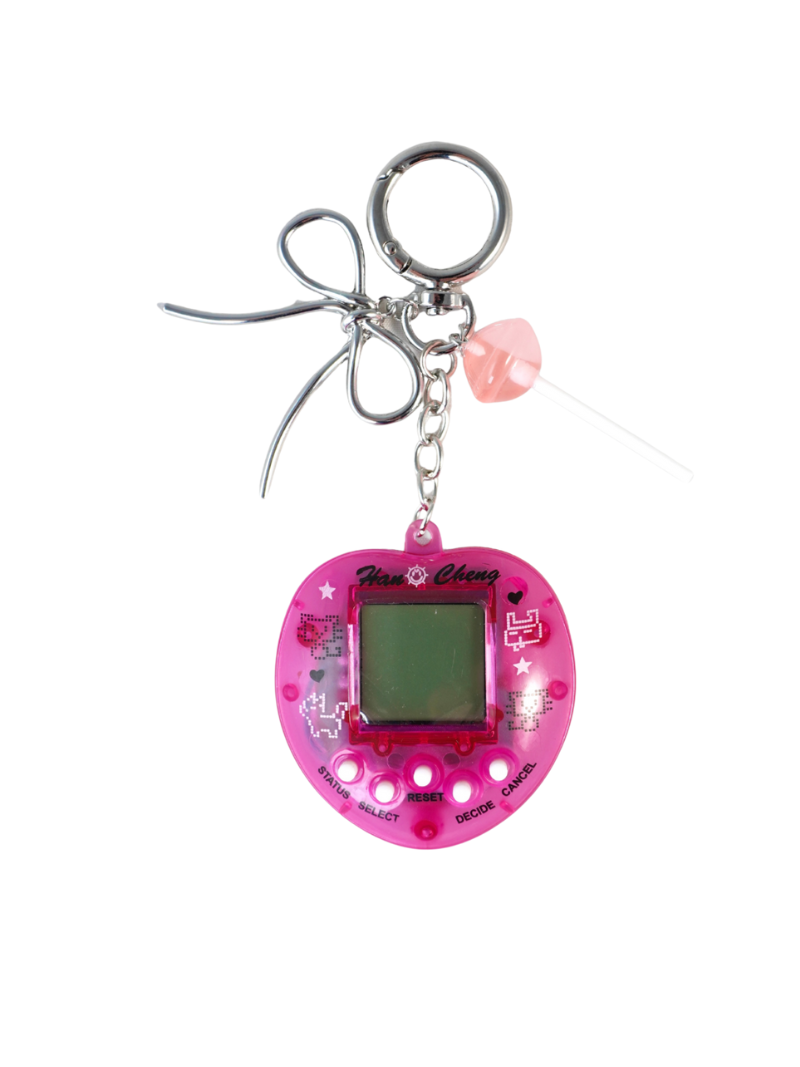 Revive la magia de los 2000’s con el Arcade pink charm, un accesorio único que combina lo retro con un estilo actual. Este charm incluye un tamagotchi rosa un lazo plateado sofisticado y un chupa chups rosa translúcido, creando la mezcla perfecta entre nostalgia y tendencia.