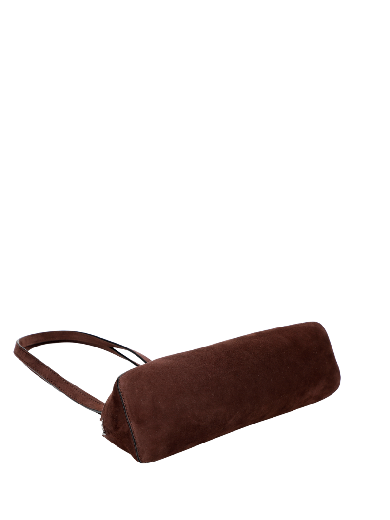 El profundo tono marrón chocolate le da un toque moderno y versátil, ideal tanto para el día como para la noche. Sus asas largas permiten llevarlo cómodamente al hombro, y su interior ofrece el espacio justo para llevar tus esenciales sin renunciar al estilo.