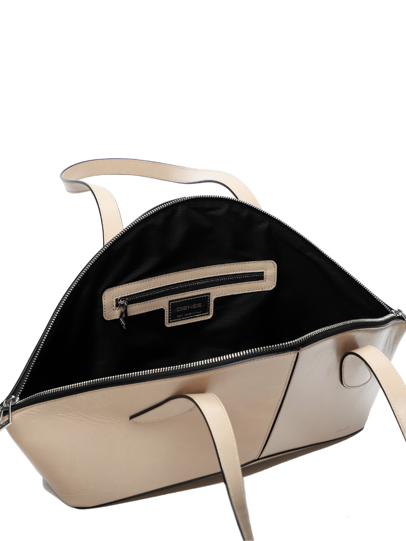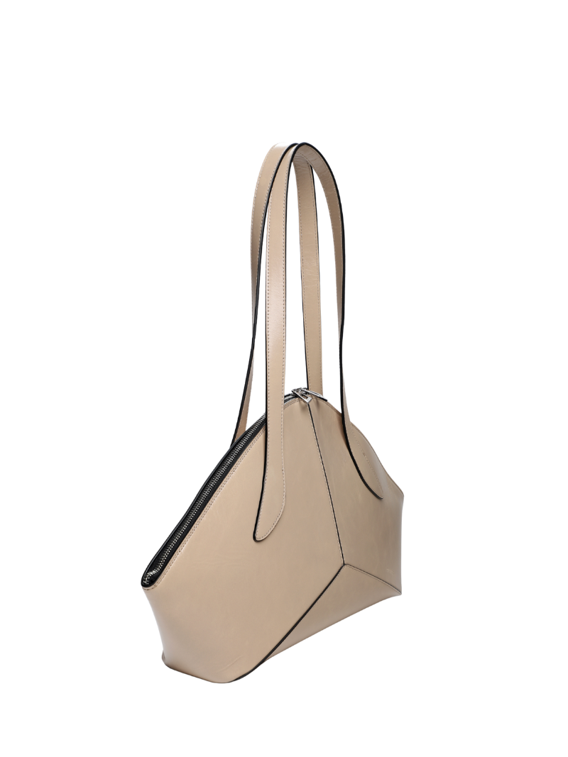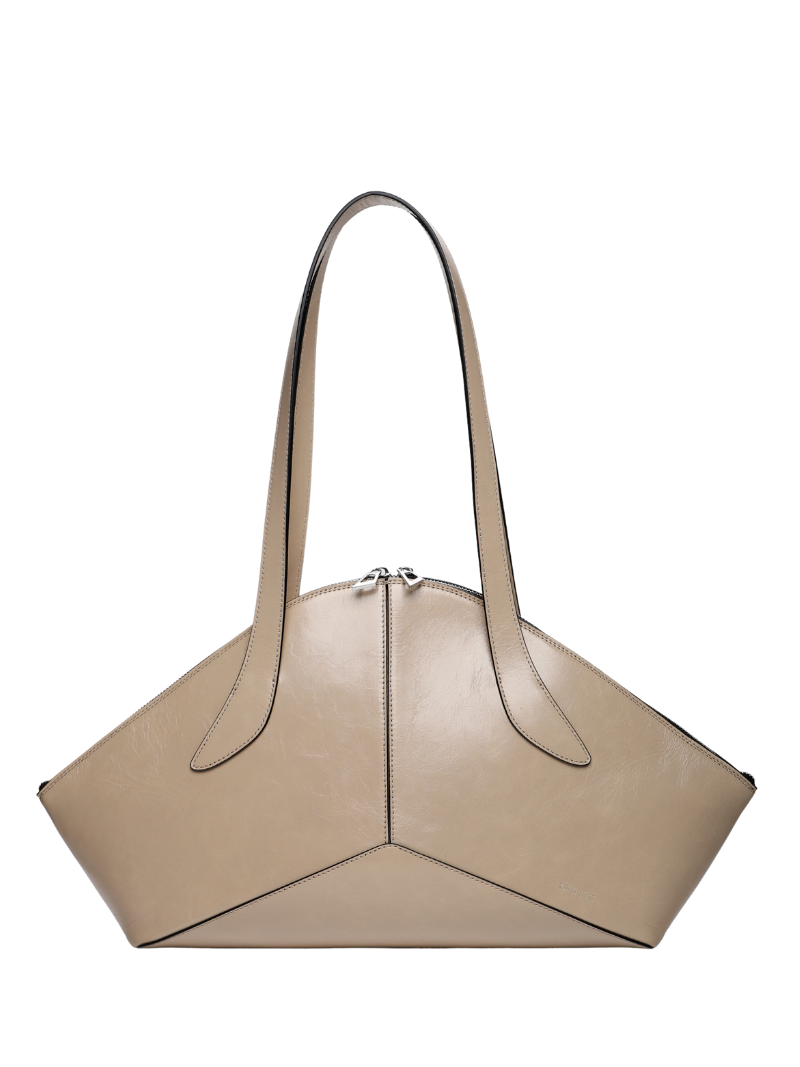 Bolso de hombro de piel en color beige. Estructurado, elegante y con ese aire minimal que nunca pasa de moda. Combina líneas limpias y una silueta arquitectónica que eleva cualquier look sin esfuerzo.