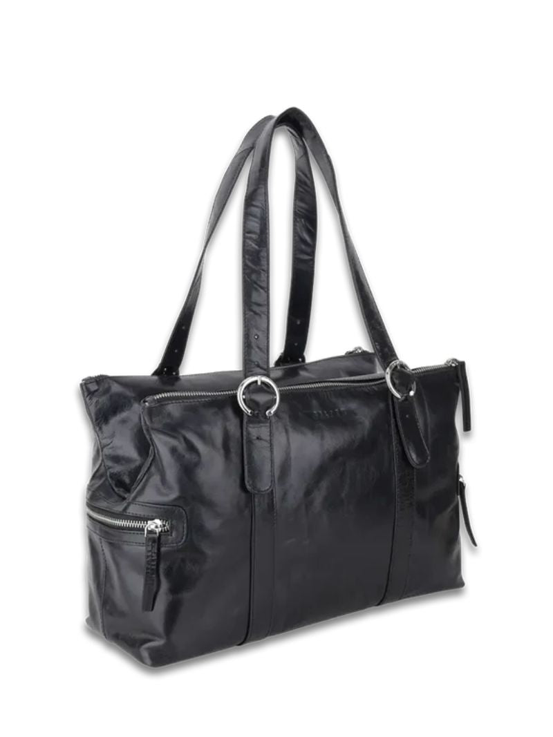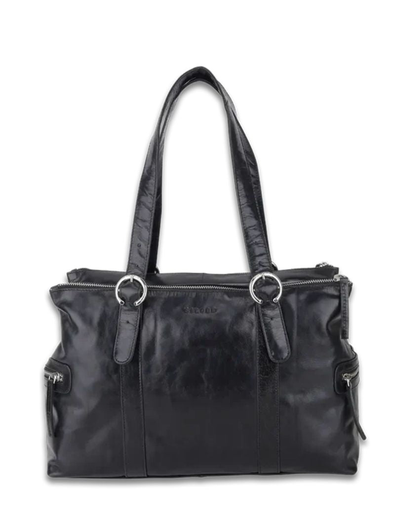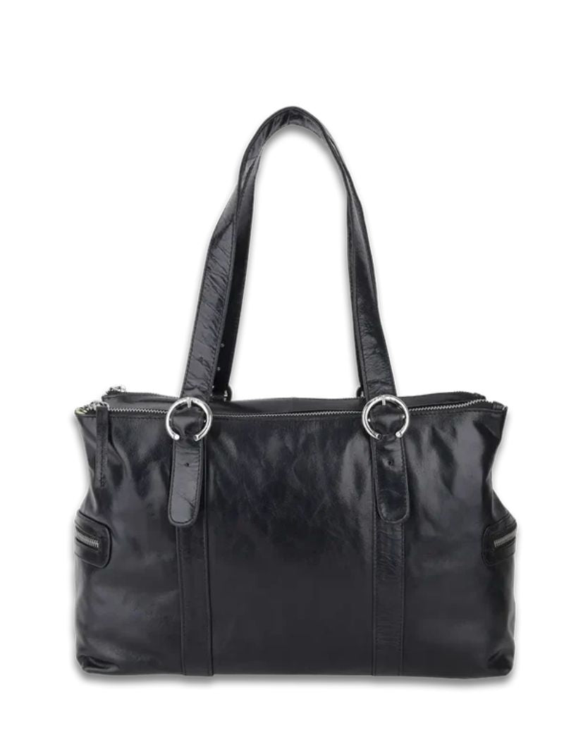 Bolso grande de hombro de piel en color negro, amplio, cómodo y perfecto para acompañarte en tu día a día. Su diseño elegante y atemporal lo convierte en un básico imprescindible, ideal tanto para looks casual como para ocasiones más especiales.