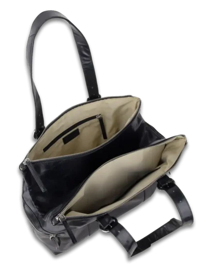 Cuenta con dos compartimentos principales amplios, con espacio suficiente para un portátil de hasta 14”, además de dos bolsillos laterales y un bolsillo interior, perfectos para mantener tus esenciales siempre organizados.