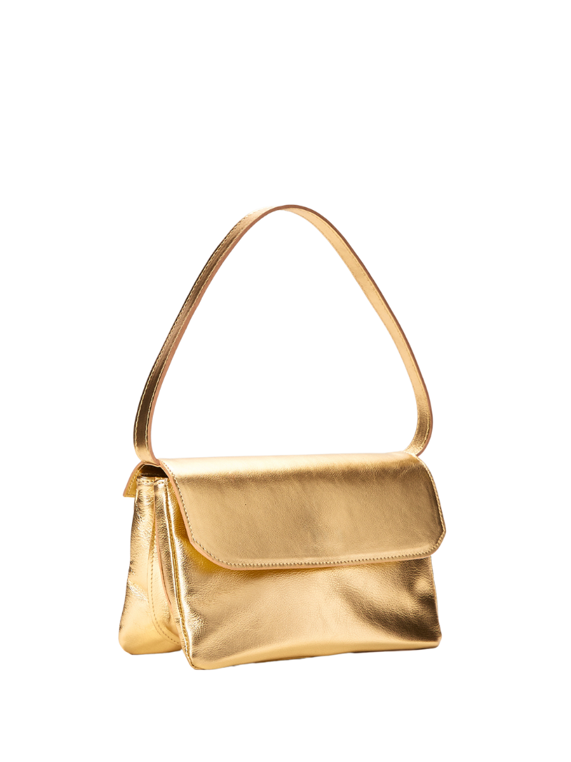 Bolso pequeño de piel de hombro en color oro. El modelo Babe está confeccionado 100% piel lo que le da un aspecto arrugado, pero con gran suavidad y luminosidad.
