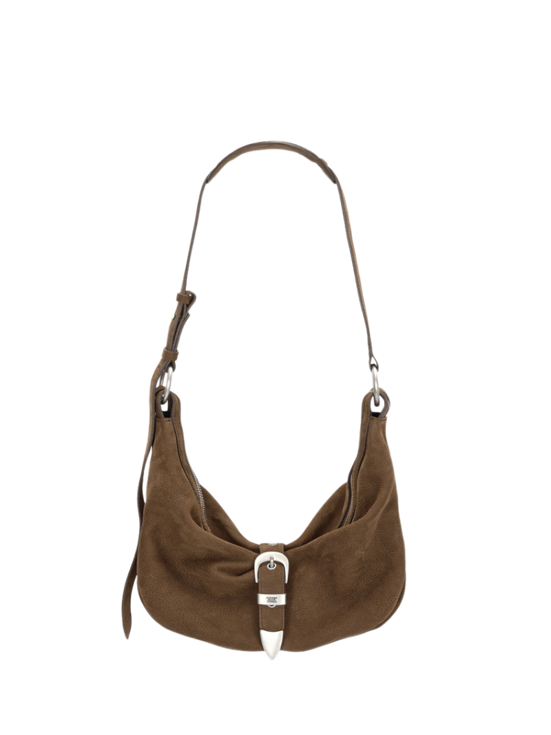 Bolso Margesherwood marrón de piel en tamaño mediano. El modelo Belted hobo medium se caracteriza por su hebilla decorativa en plateado en la parte delantera del bolso.