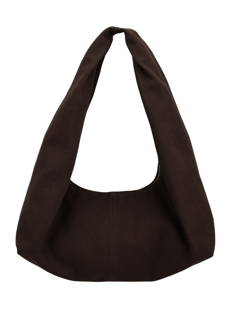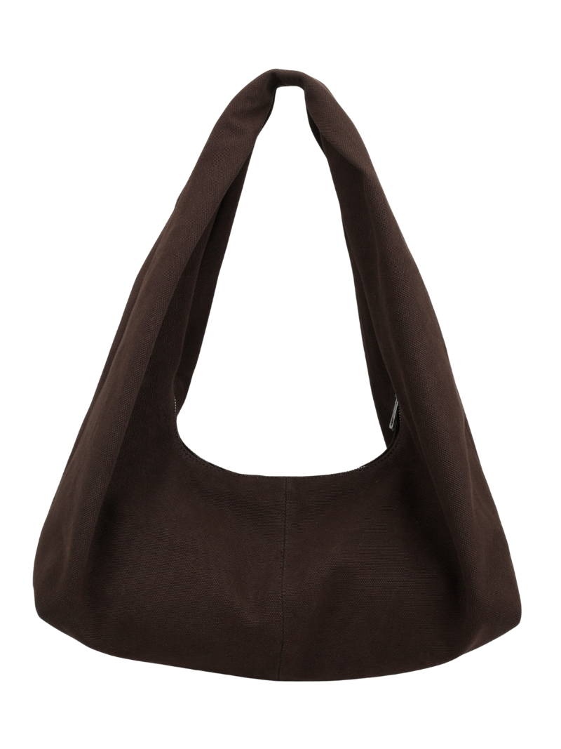 Bolso grande de hombro en color café, espacioso y versátil, ideal para combinar con cualquier estilo. Diseñado con un amplio compartimento principal y un cierre de cremallera seguro, garantiza la protección de tus pertenencias en todo momento. Su estética limpia y minimalista lo convierte en el complemento perfecto para el uso diario, aportando un toque moderno y sofisticado.
