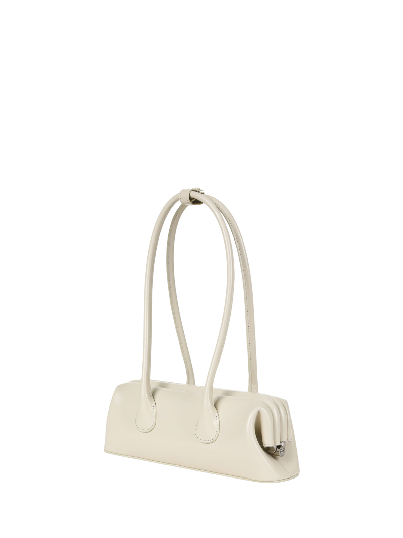 El bolso Boat Wide mini cream de OSOI es un bolso baguette de piel color crema, fabricado con materiales de alta calidad. Su diseño minimalista y amplio espacio interior lo convierten en el accesorio perfecto para quienes buscan funcionalidad y estilo.
