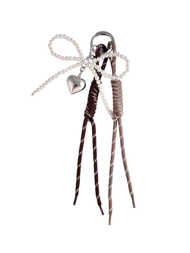 El Bow Charm Brown de Ferent Bags es la definición de elegancia silenciosa. Con un lazo de perlas delicado, un charm de corazón metálico y cordones en tonos chocolate y topo, este accesorio aporta calidez, equilibrio y sofisticación a cualquier bolso. Ideal para las que adoran los neutros… pero con un toque especial.