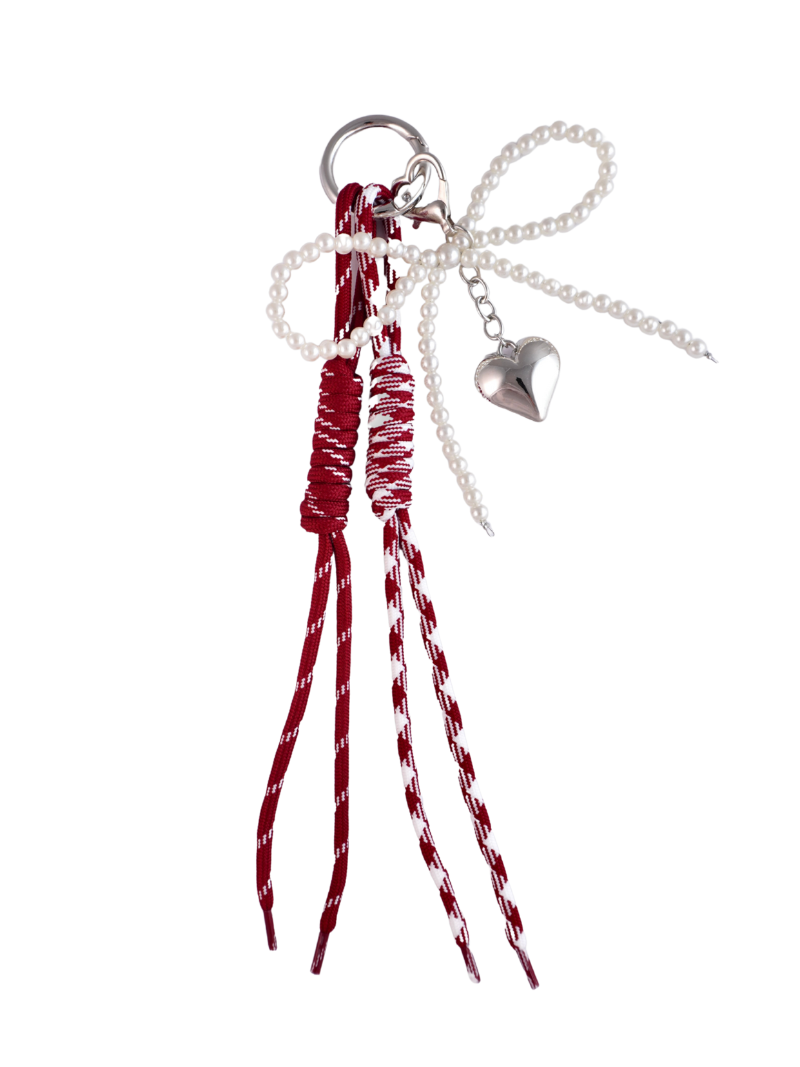 El Bow Charm (Red) de Ferent Bags es un flechazo a primera vista. Su lazo de perlas, combinado con un corazón plateado y cordones trenzados en distintos tonos de rojo, lo convierten en el accesorio perfecto para quienes adoran los detalles con carácter romántico y fuerza visual. Ideal para bolsos que necesitan un toque especial (y un poco de amor a juego).