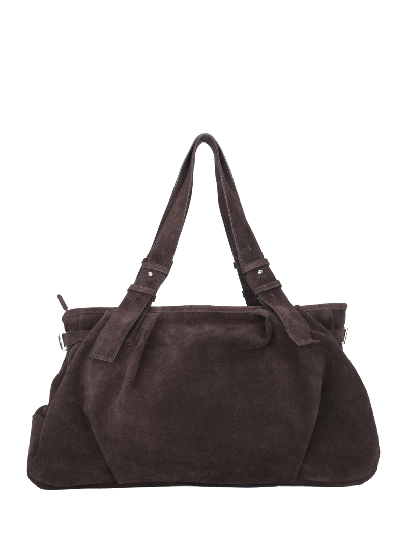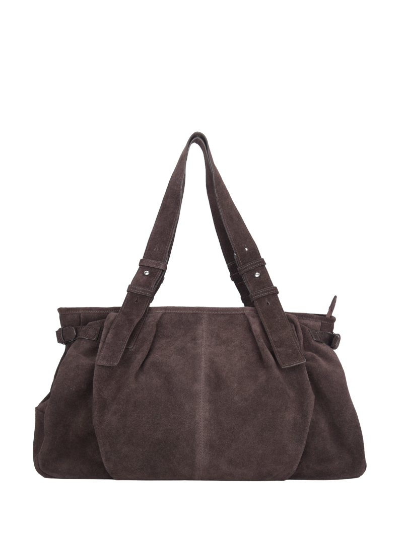 Bolso de hombro atemporal y espacioso de la colección Bruna Bear x SILFEN, confeccionado en ante de color marrón con un acabado natural y elegante. Perfecto tanto para el día a día como para ocasiones especiales. Sus asas ajustables permiten llevarlo al hombro o en la mano.
