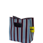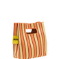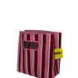 Bolso de mano tipo bucket con un llamativo estampado de rayas rosa, rojo y blanco. Diseñado para destacar, combina un estilo moderno con funcionalidad.