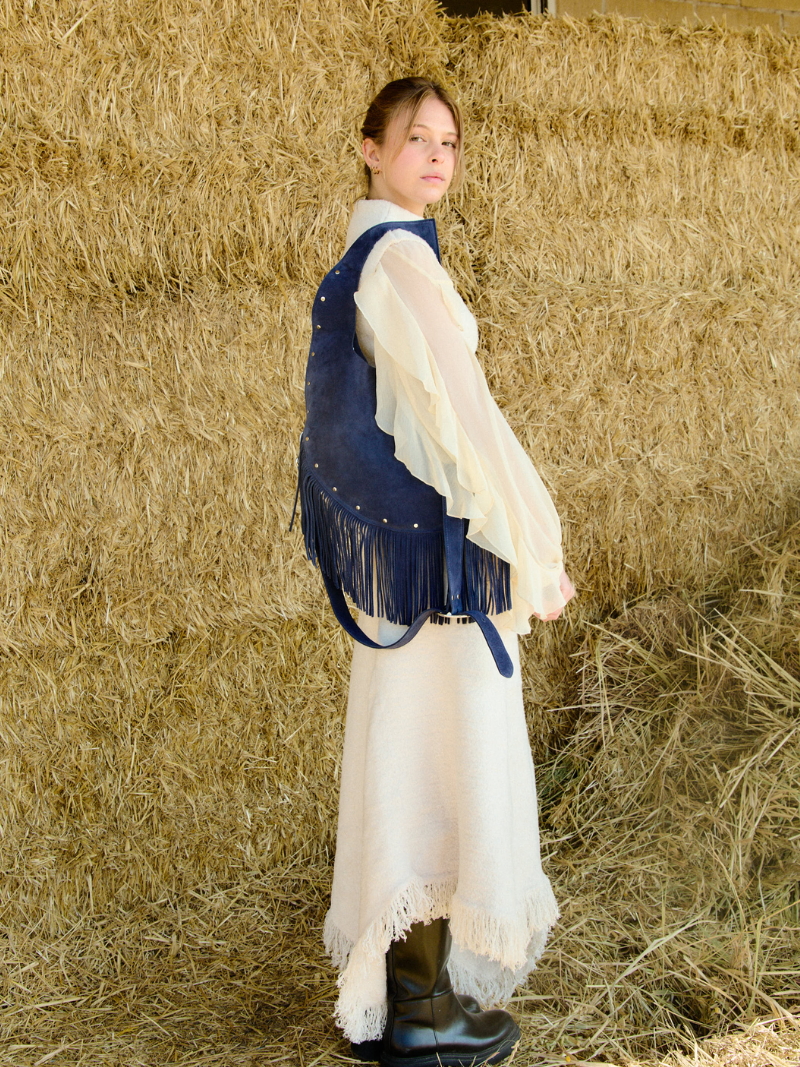 Con un marcado estilo boho chic, este bolso se adapta a tu ritmo gracias a sus dos asas: una corta para llevar al hombro y otra ajustable e intercambiable para usarlo como bandolera o shopper. El diseño incluye flecos largos, tachuelas metálicas decorativas y el logo estampado en el frontal, aportando movimiento, textura y un aire desenfadado y sofisticado.