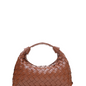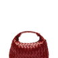 Bolso mediano burdeos de mano con un asa corta y una cadena larga para llevarlo cruzado. Confeccionado en 100% piel y con un diseño trenzado. El bolso tiene un compartimento principal con un bolsillo pequeño interior que se cierra con una cremallera.
