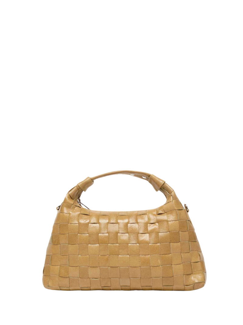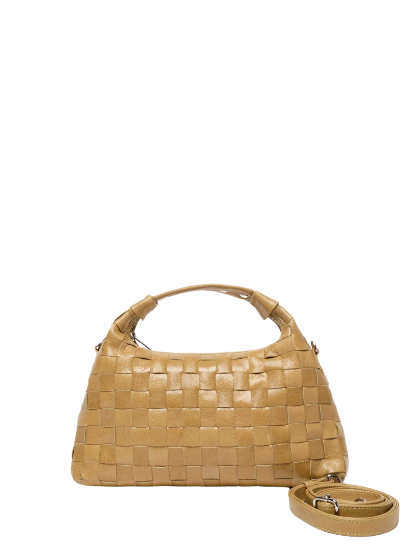 Incluye una cadena extraíble que permite llevar el bolso como bandolera o al hombro. Su diseño combina elegancia y funcionalidad, perfecto tanto para el día a día como para ocasiones especiales. El acabado trenzado le da un toque artesanal y sofisticado, mientras que el color mostaza aporta un aire moderno y versátil.
