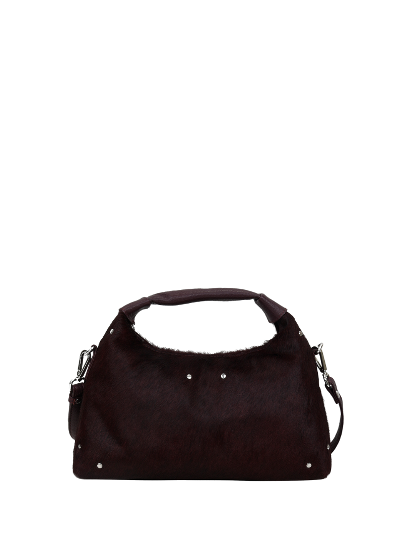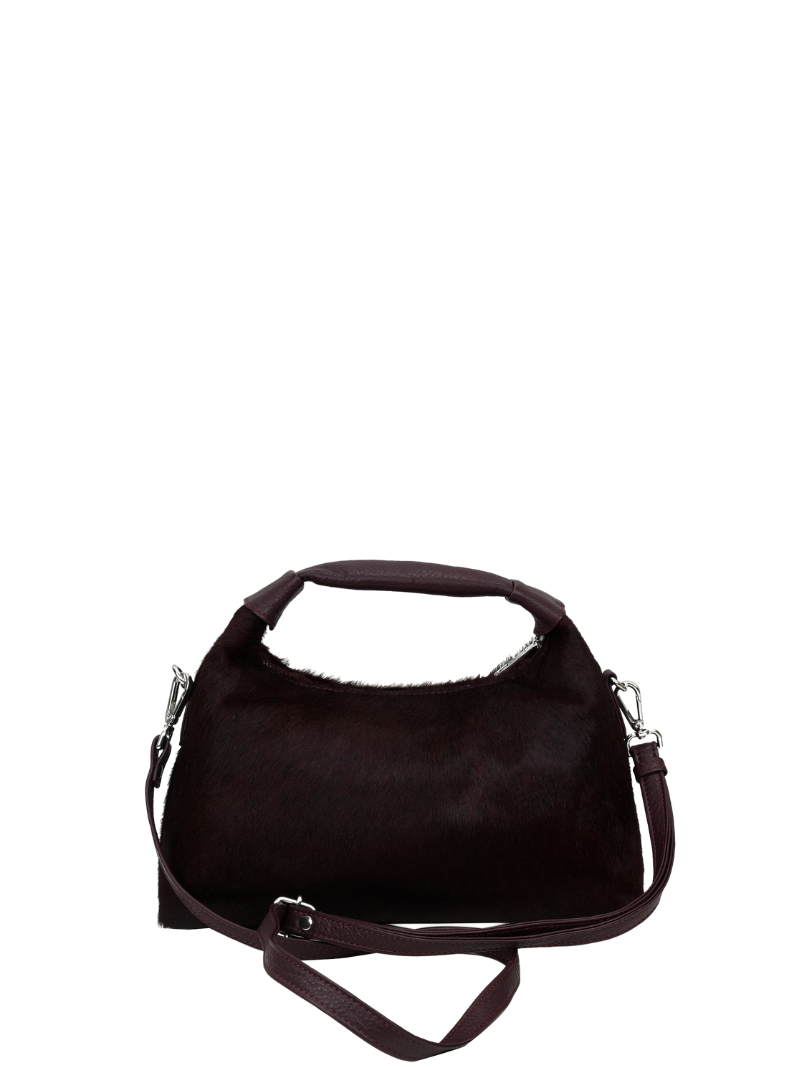 Incluye una cadena extraíble que permite llevar el bolso como bandolera o cruzado. Su diseño combina practicidad y estilo, ideal tanto para el día a día como para ocasiones más especiales. El acabado en pelo le da un toque original y sofisticado, mientras que los detalles metálicos añaden un aire moderno. Compacto pero funcional, este bolso es perfecto para llevar lo esencial con un toque elegante.