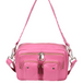 Bolso mediano de piel de color rosa con las cremalleras y las tachuelas doradas. Un bolso mediano perfecto para tu día a día.